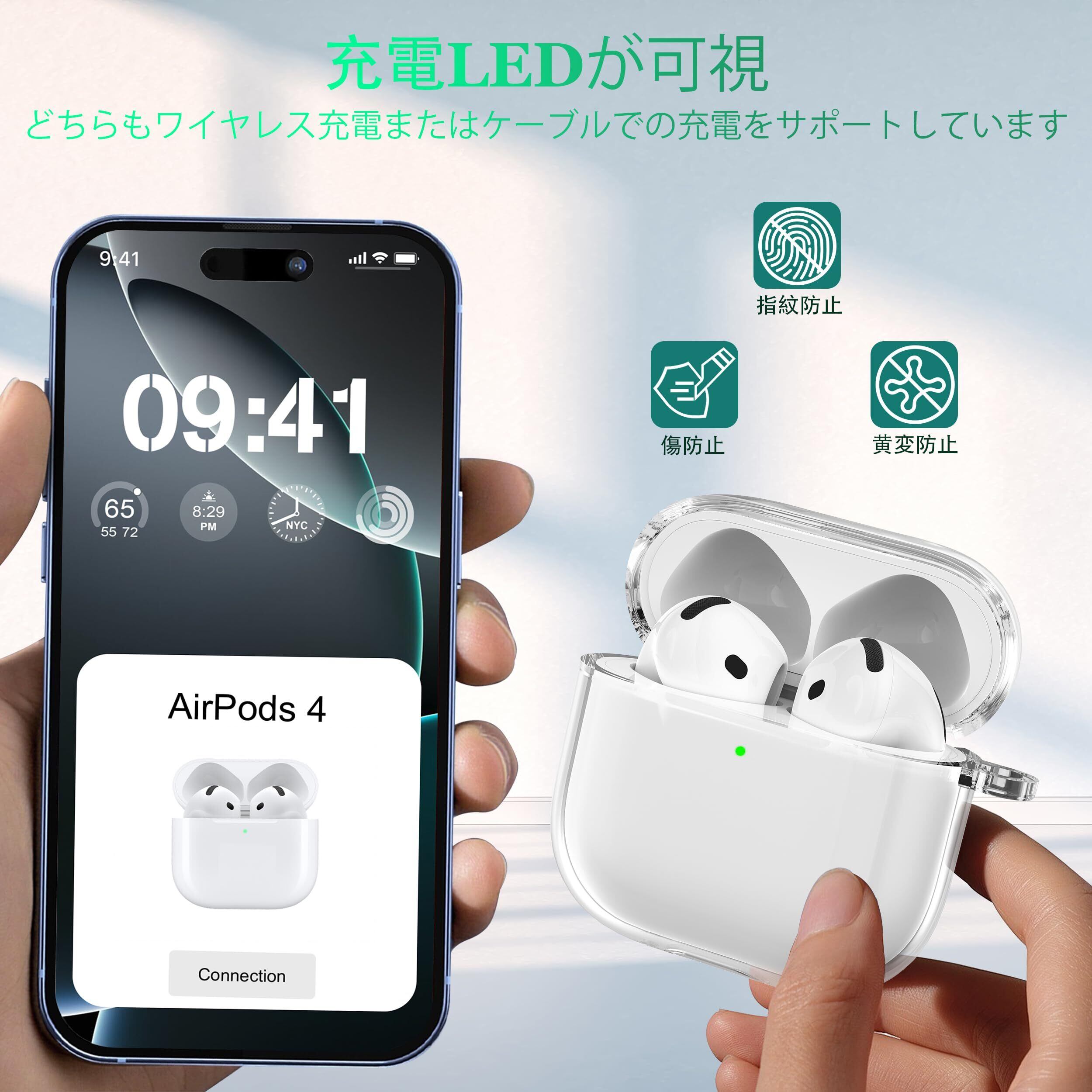 【Apple AirPods第4世代用クリアケース】: このケースはApple AirPods 4 2024年新発売にのみ適しており、他の関連デバイスとは互換性がありません。 2つのピースに分かれたデザインにより、AirPodsをより安全に保護しながら、取り付けと取り外しが簡単になります。
