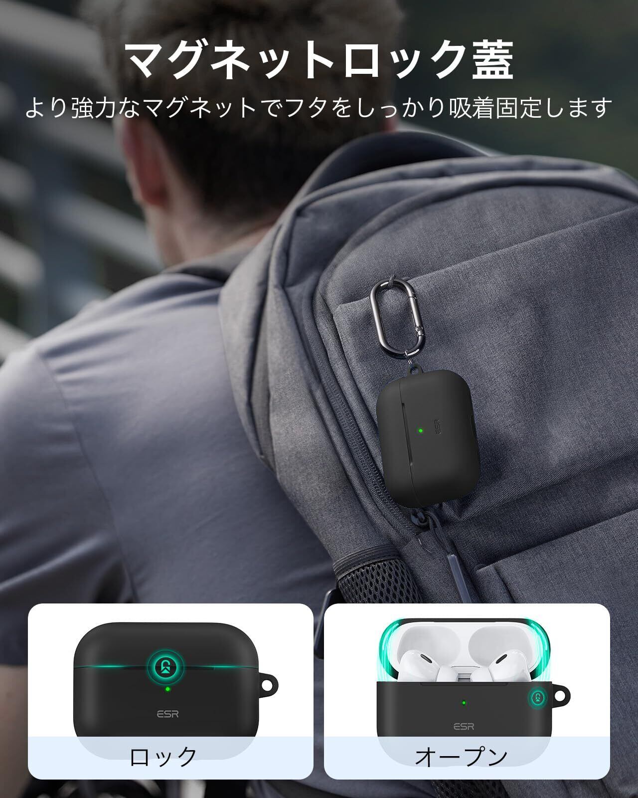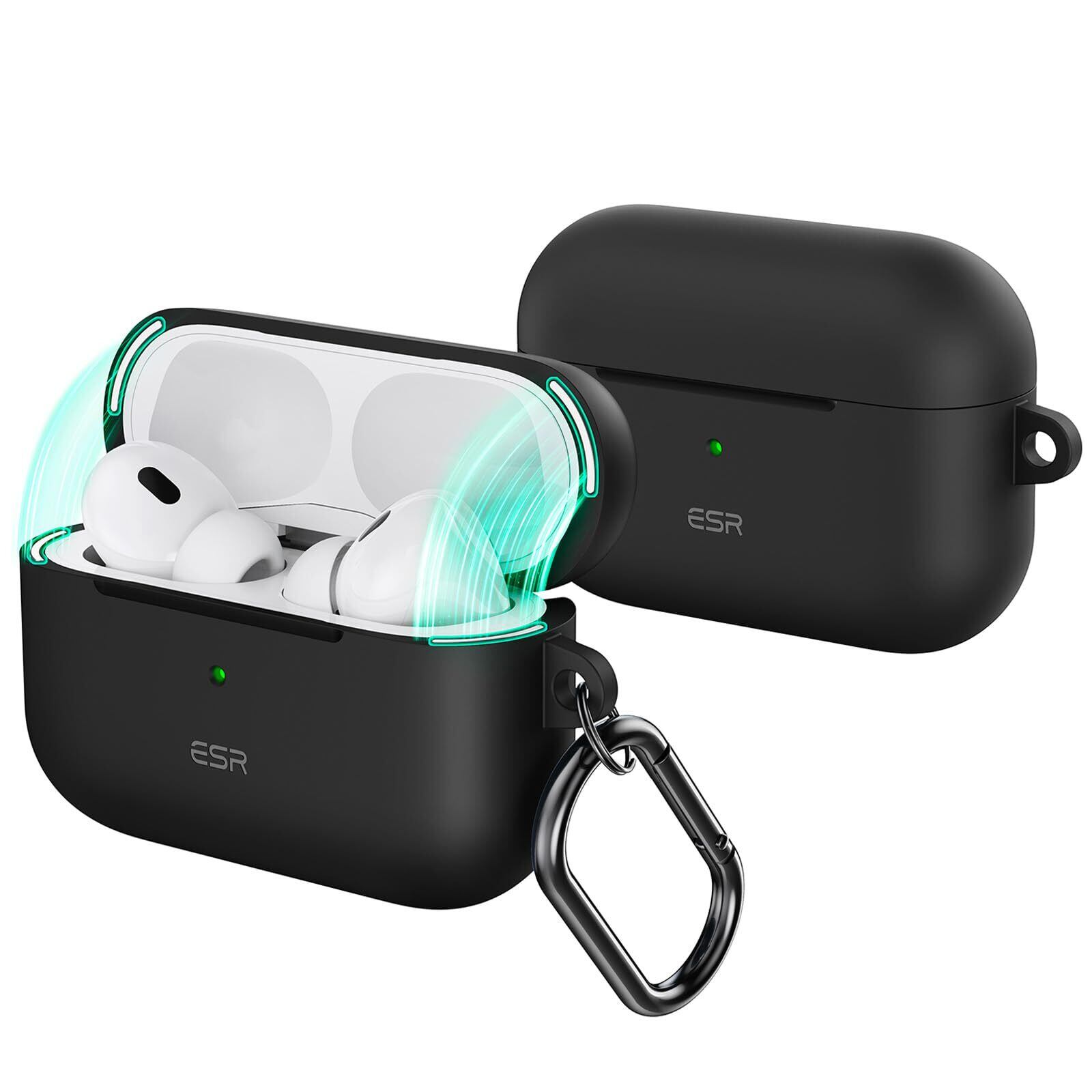 ESR AirPods Pro2 ケース(2023/2022/2019)AirPods Pro ケース(USB-C/Lightningケーブル)対応 マグネット蓋 カラビナ付き完全落下保護カバー Cloudシリーズ ブラック