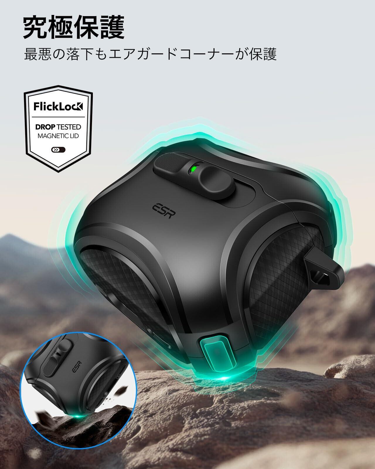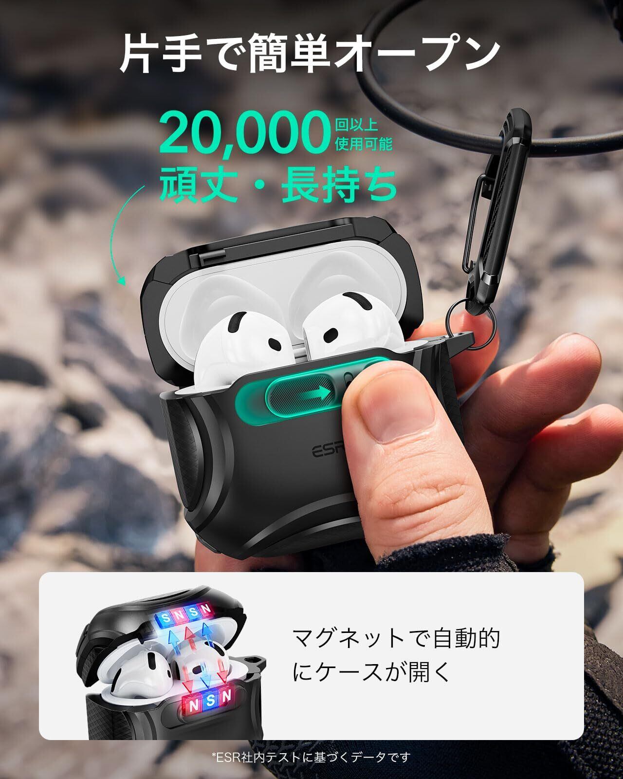 【在庫処分】ESR AirPods 4 ケース AirPods 第4世代 ケース(2024) (USB-C) 対応 MagSafe 対応 落下防止ロック イージーオープン Cyberシリーズ ブラック
