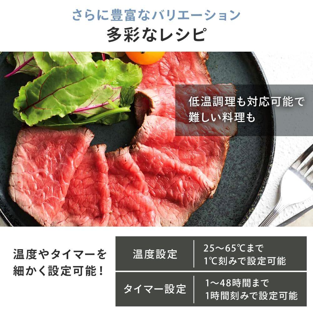 【その他調理機能】低温調理も対応可能で、ローストビーフ等の難しい料理もできます。<温度設定>25~65℃まで1℃刻みで設定可能!<タイマー設定>1~48時間まで1時間刻みで設定可能!