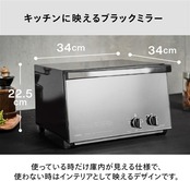 【ミラーガラスでデザインも機能もスタイリッシュに。】使っているときだけ庫内が見える、スタイリッシュなトースター。 リビングからも見える場所に置くなら、家電にもデザイン性を求めたい。そんな声から生まれたツインバードのミラーガラスシリーズ。使っているときだけ庫内が見える仕様。使わないときは、インテリアとしての美しさを漂わす。細部にまでこだわってリニューアルを重ねてきました。