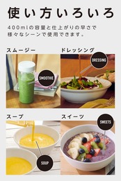 【持ち運びに便利】ブレンダーとボトルがセットになっているので作ったらそのまま飲めます。なので準備も片付けもかんたんスピーディ!忙しい毎日でも、スムージー生活がおいしくつづけられます。