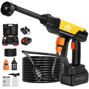 高圧洗浄機【2025新モデル・洗車店監修】コードレス 充電式 / 大容量バッテリー2個付き 合計24000mAh マキタ互換 噴射距離10M 軽量小型 自吸式 多機能6in1ノズル 収納ケース付き 5mホース 洗車 家庭用 庭 ベランダ 網戸外壁園芸用品 PSE認証済み YIBEST-黄色
