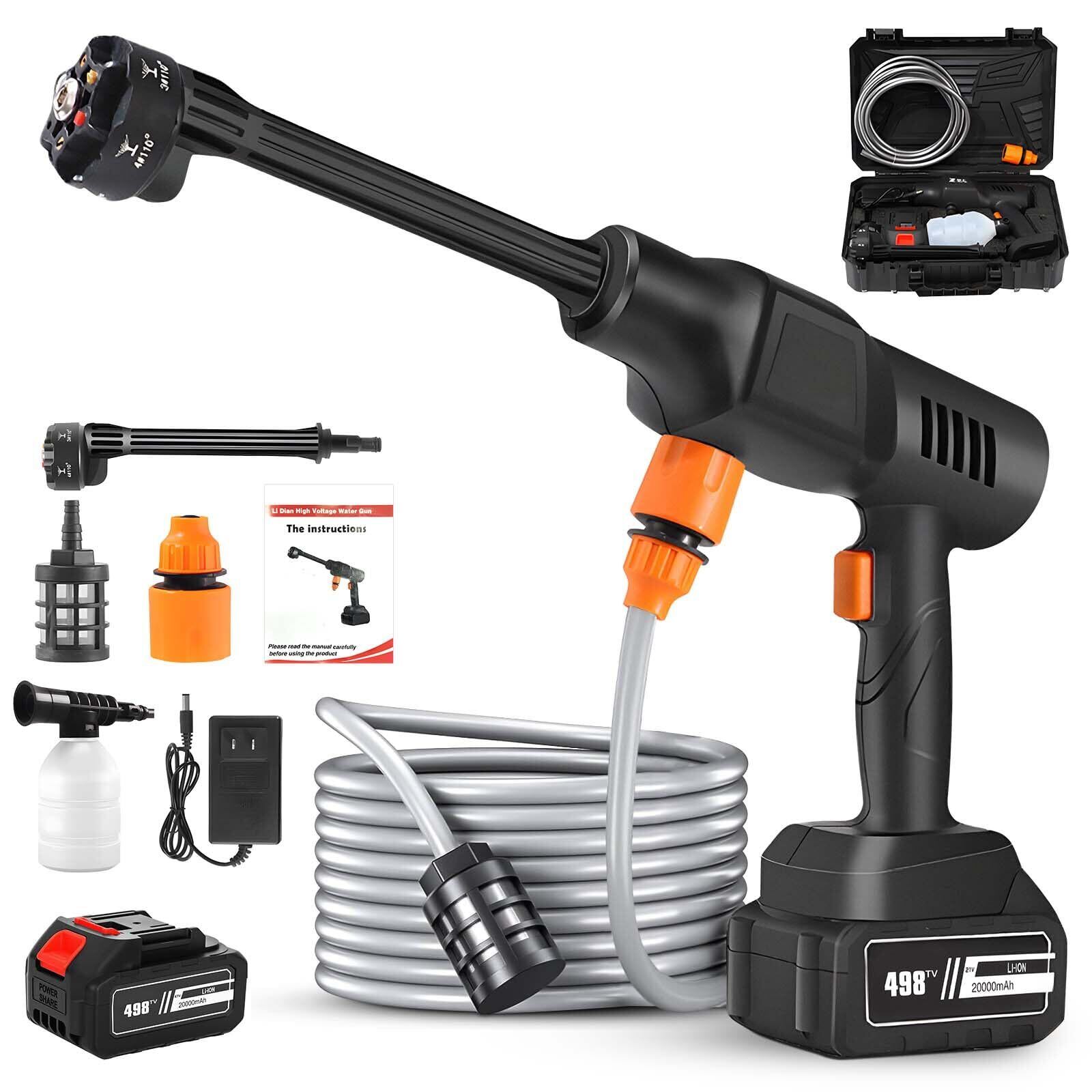 【特価商品】充電式 高圧洗浄機【2025新型モデル強化版】高圧洗浄機 コードレス 20000mAh大容量 バッテリー付き コードレス洗車機 噴射距離9-12M 多機能6in1ノズル、自由に切り替え可能 3段階 300W バッテリー式 取り外し可能 10mホース 収納ボックス付き 持ち運びに便利です 家庭での車の洗車 農作物の散水 駐車場 ペットの洗浄 エアコンの室外機 浴室 キャンプ用品清掃