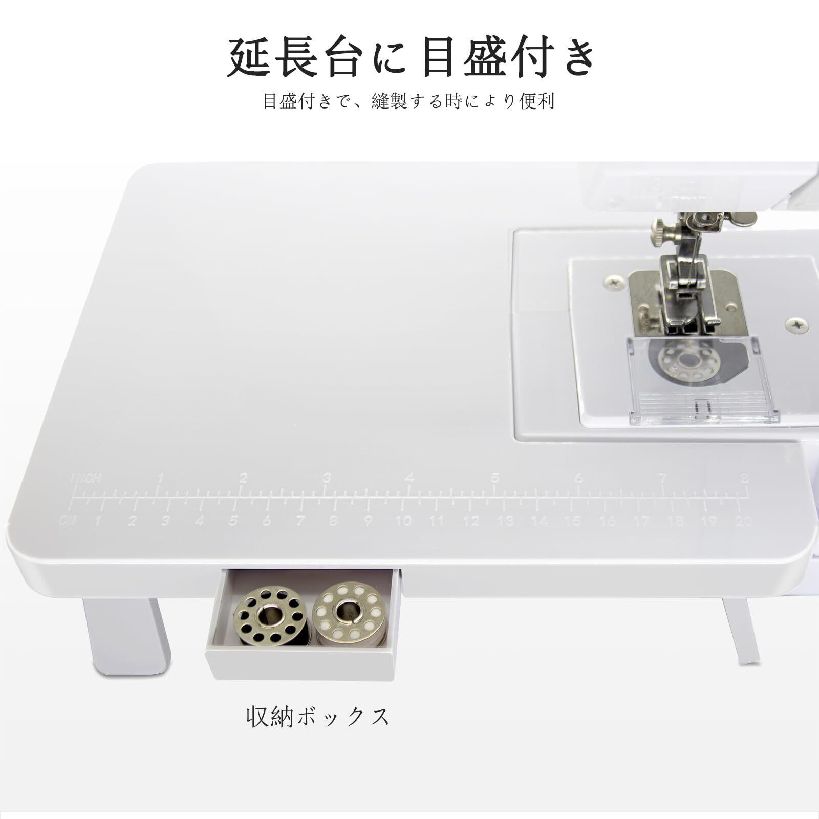 延長台は取付/取外可能、縫製スペースがより大きい:完璧に機械の周りに取り付けます。大きいな物を縫製する時に、より安定性を提供でき、より専門的な効果があります。お布団、インテリア飾りや服装などに非常に適用します。