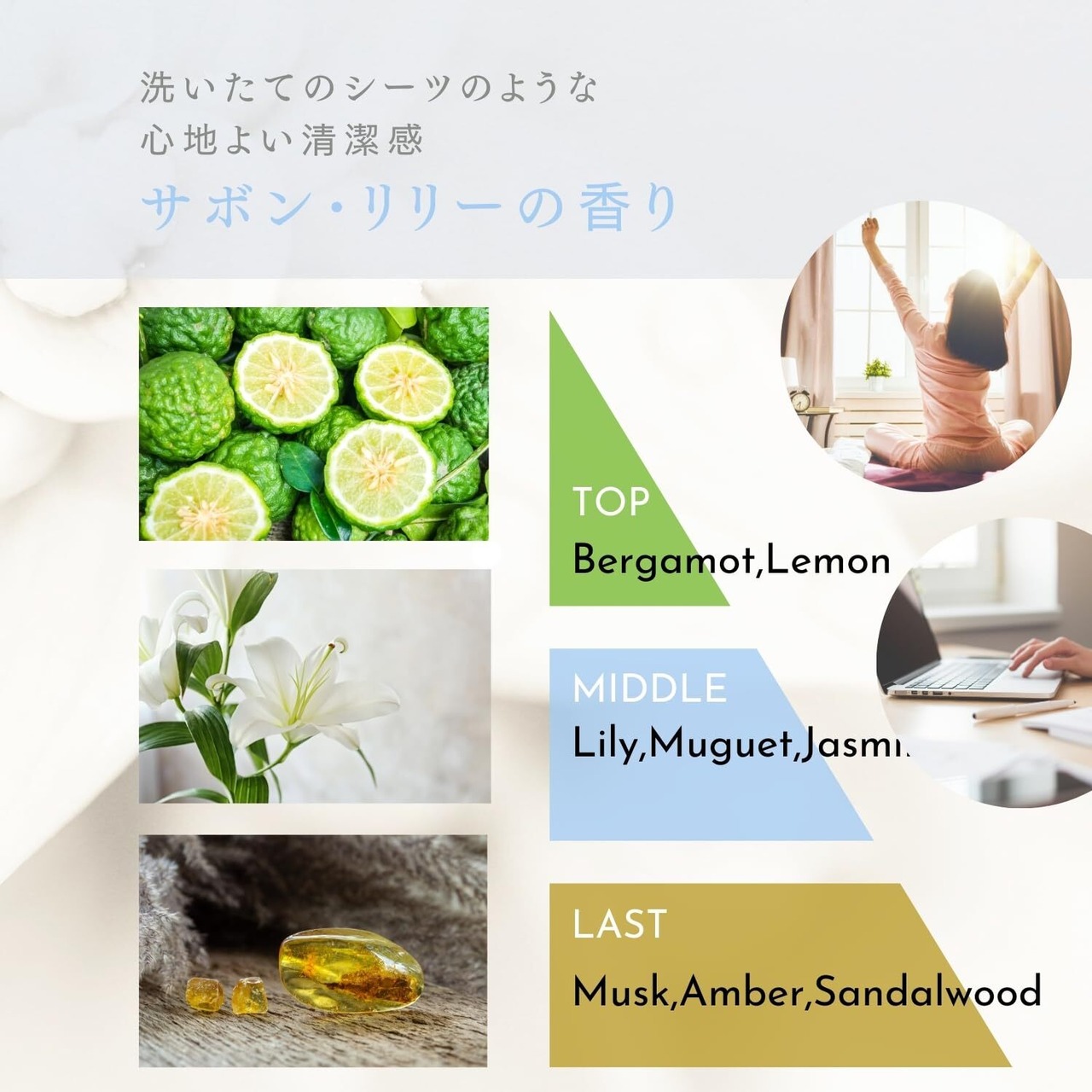 【ホワイトリリー】柑橘系とホワイトリリーが調和した爽やかな石鹸の香りの香水。リリー・ミュゲなどのシロ系統のフローラルな香りが、メンズ・レディース問わず使えるパルファム