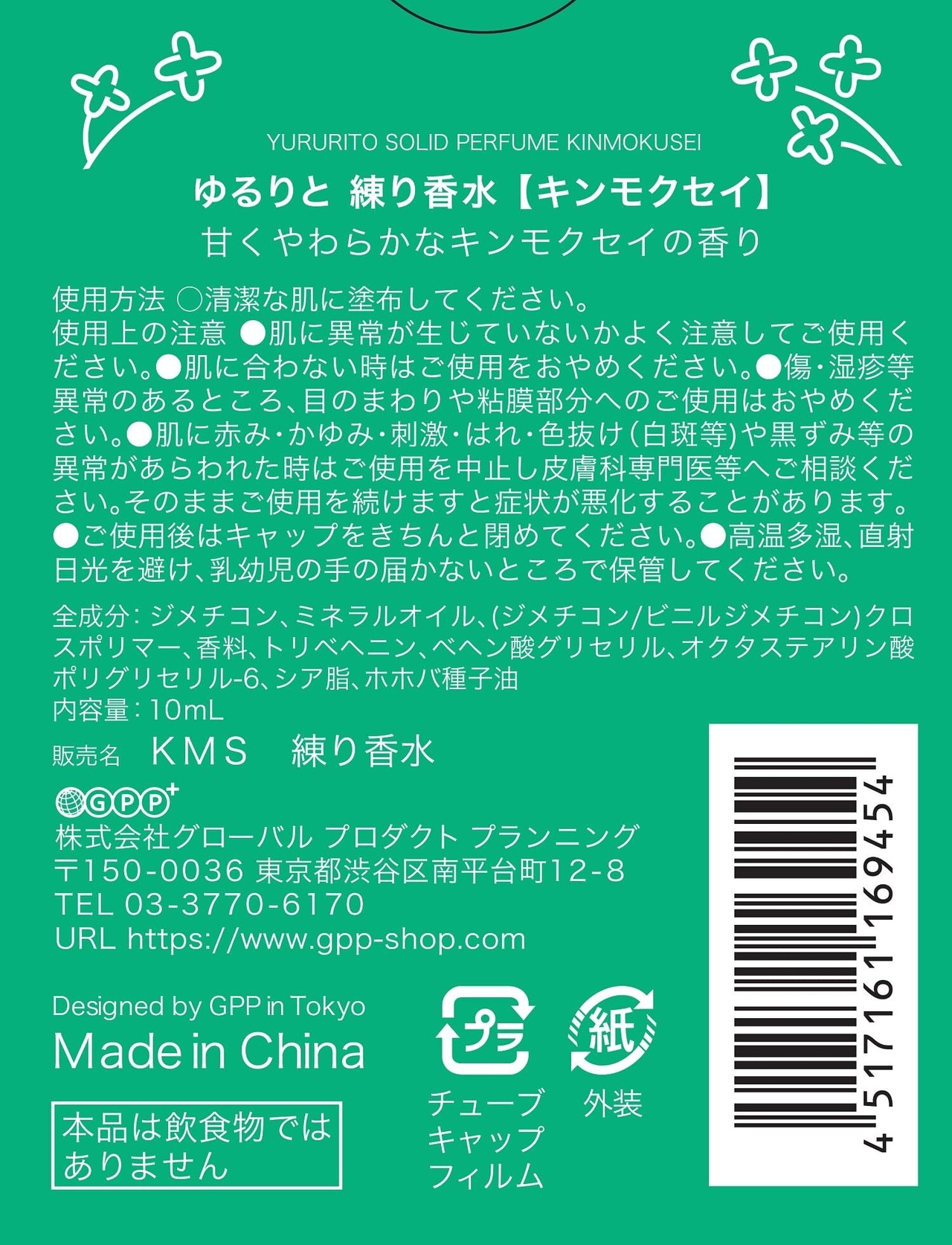 ゆるりと 金木犀香る練り香水(ソリッドパルファム バームタイプ キンモクセイ オスマンサス)