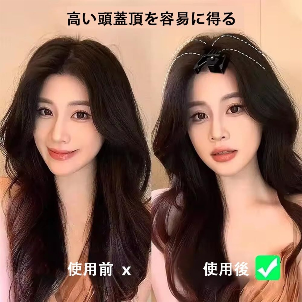 1.【自然な立ち上がりで魅力的な前髪に】前髪たちあげクリップは、根元からしっかりボリュームを出し、ぺたんこ髪に立体感を与えます。日系のふんわりスタイルやセンターパート、流れるような毛流れにも対応し、髪型を自然で華やかに仕上げます