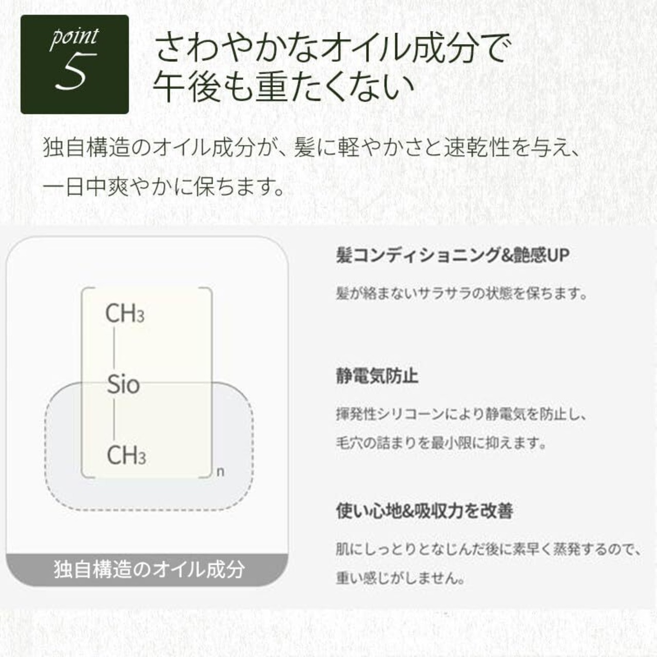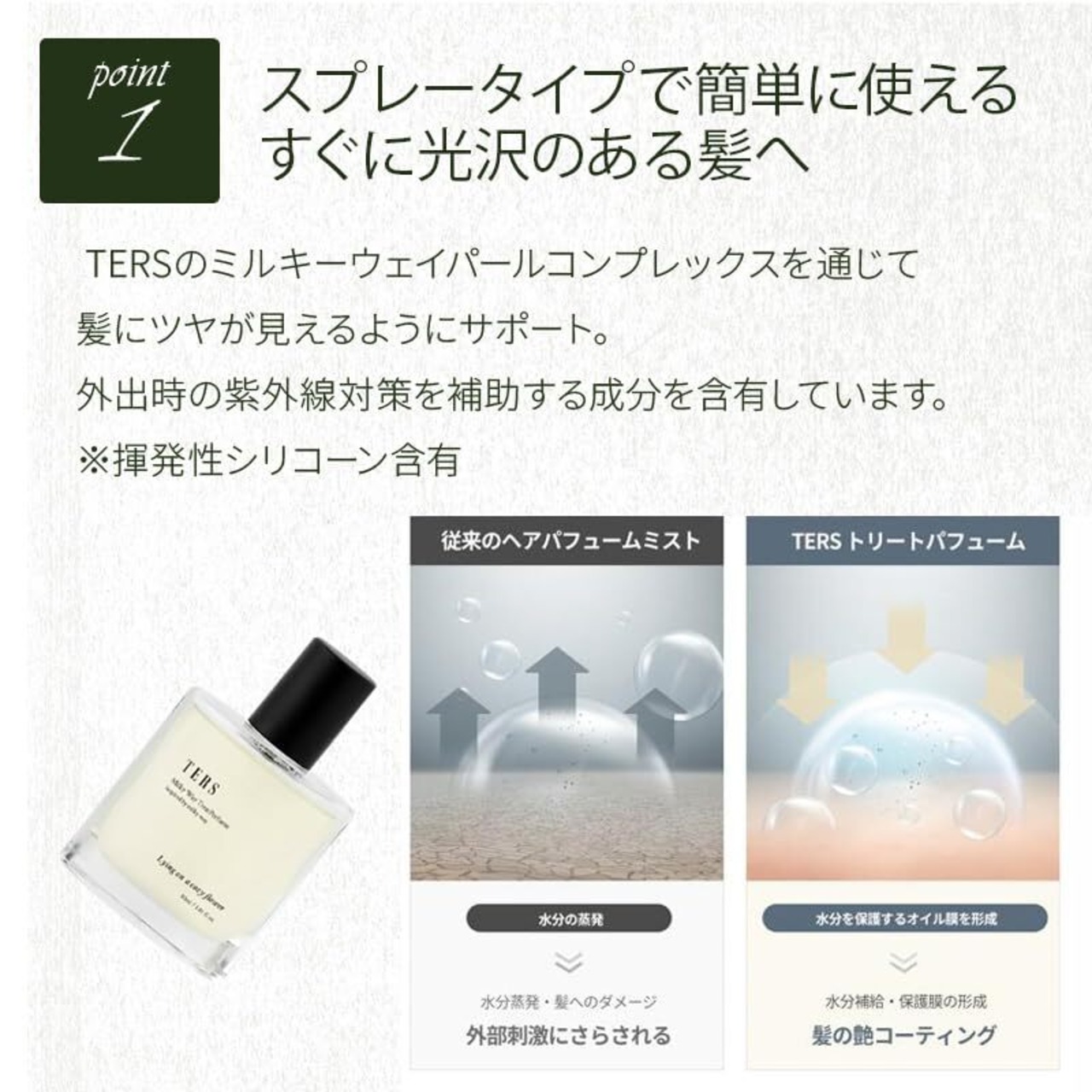 軽やかにまといながら、ツヤとうるおいを与えるオイルin処方。 日中の乾燥や摩擦ダメージをケアしながら、香りも“お直し”できる頼れる1本。 持ち歩きにも便利な30mLで、外出先でもしあわせチャージ。