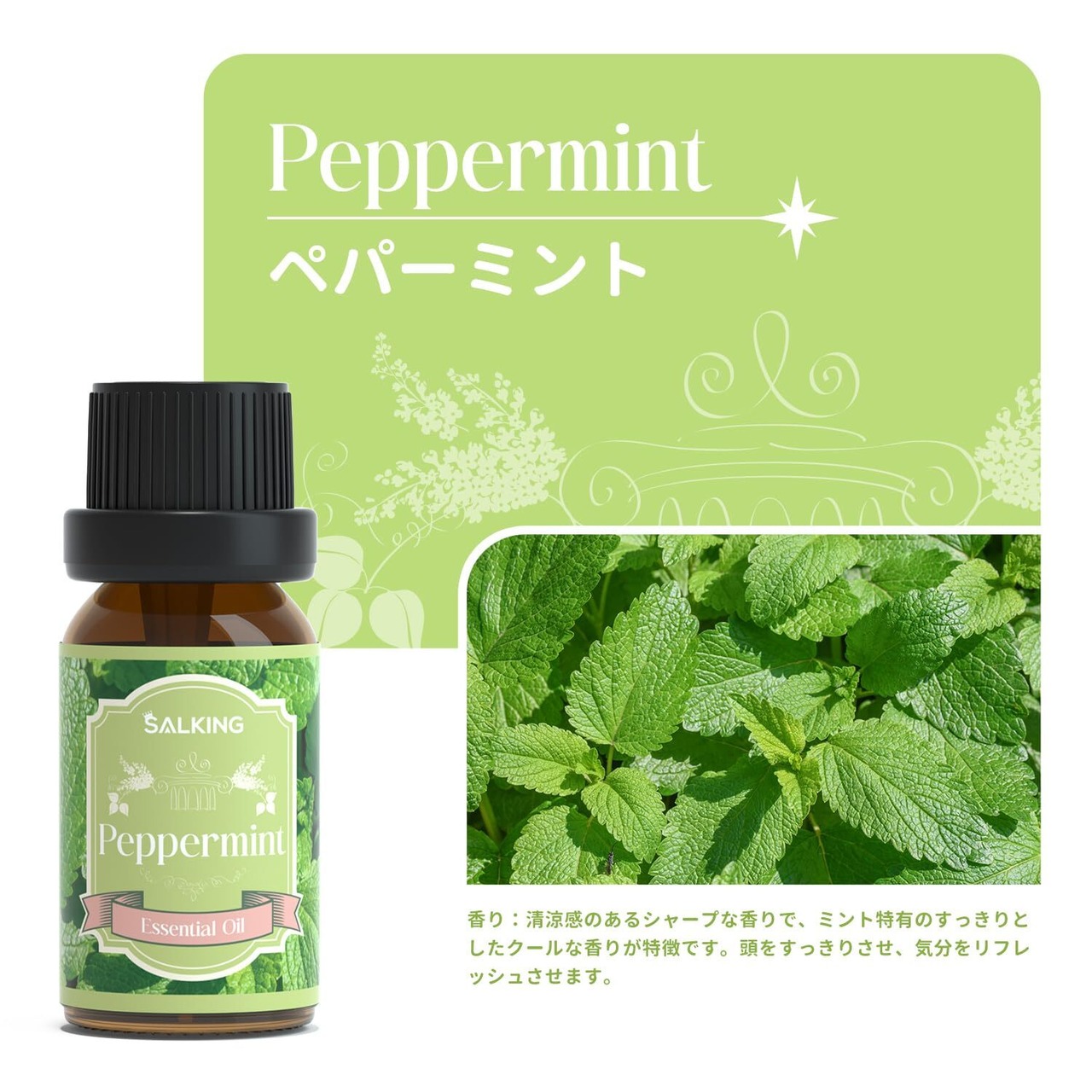 SALKING ペパーミント 精油 10ml アロマオイル ハッカ系 エッセンシャルオイル 天然 100% ピュア 虫よけ オイル リラックス/アロマディフューザー/加湿器/プレゼント にも最適 Peppermint Essential Oil