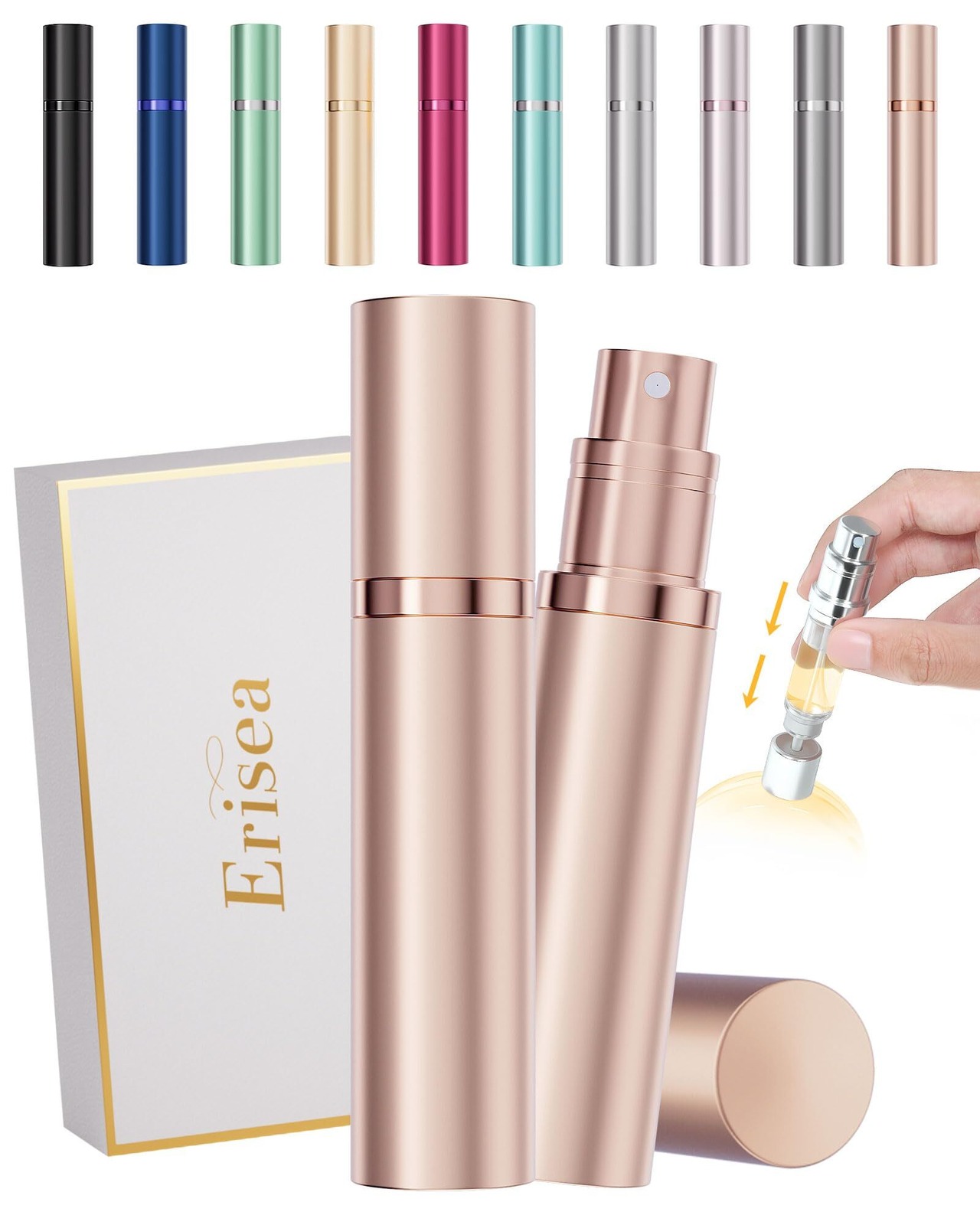 Eriseaアトマイザー 香水 持ち運び 10色 5ml 小分け容器 香水入れ 携帯 回転 男女兼用 持ち運び 漏れない 揮発しない 底部充填 (ローズゴールド)