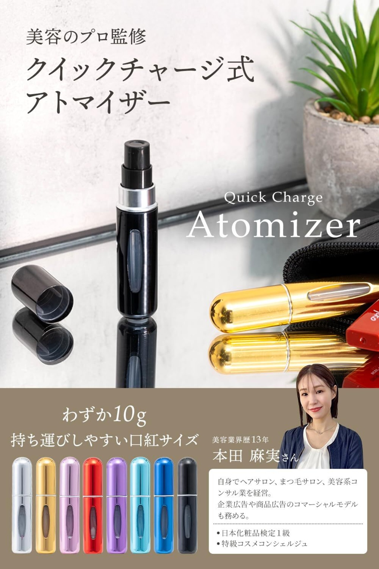 【数量限定】アトマイザー 香水入れ (5ml)【美容のプロ監修x日本メーカー】簡単ワンタッチ補充x持ち運びやすい口紅サイズx重さわずか10g (ピンク)