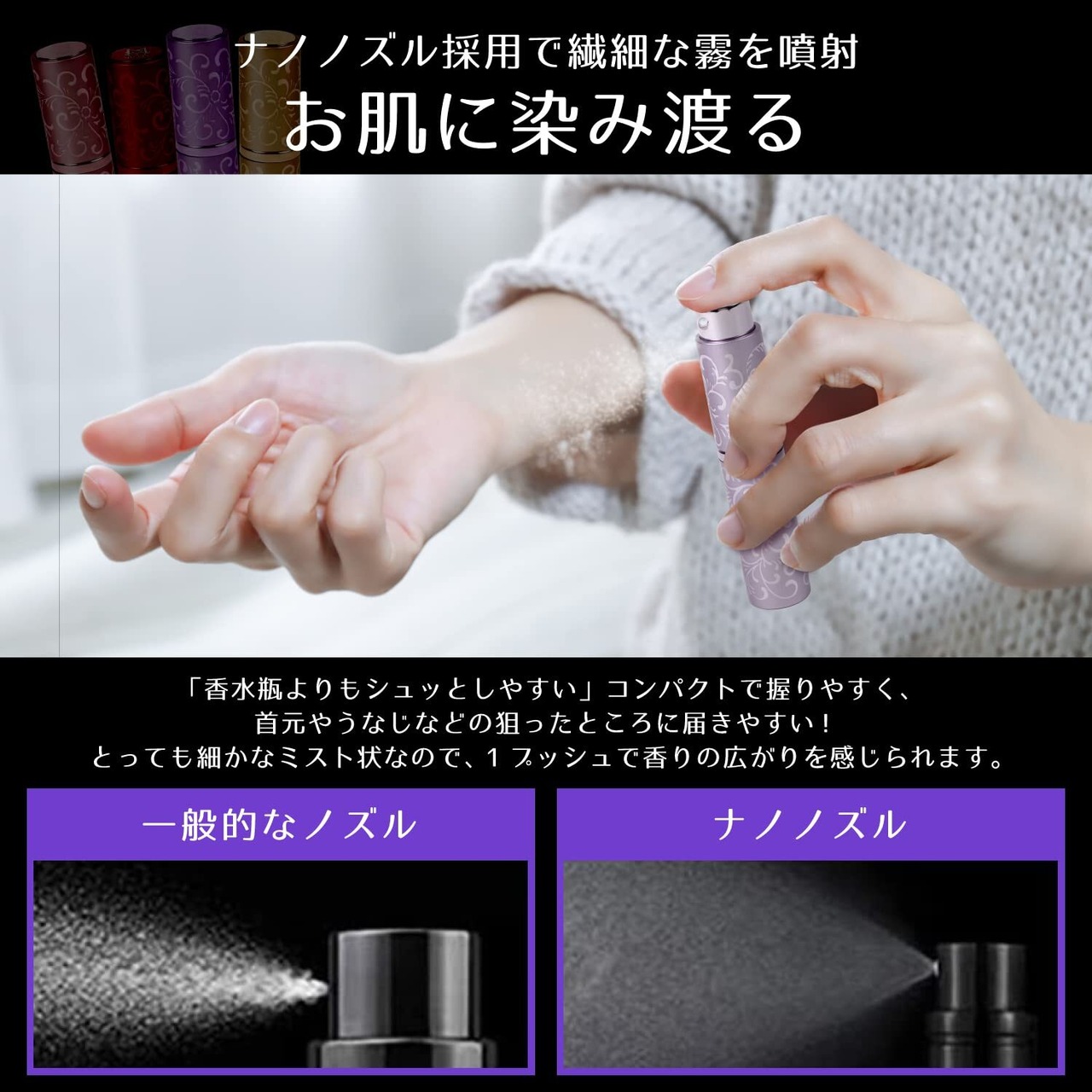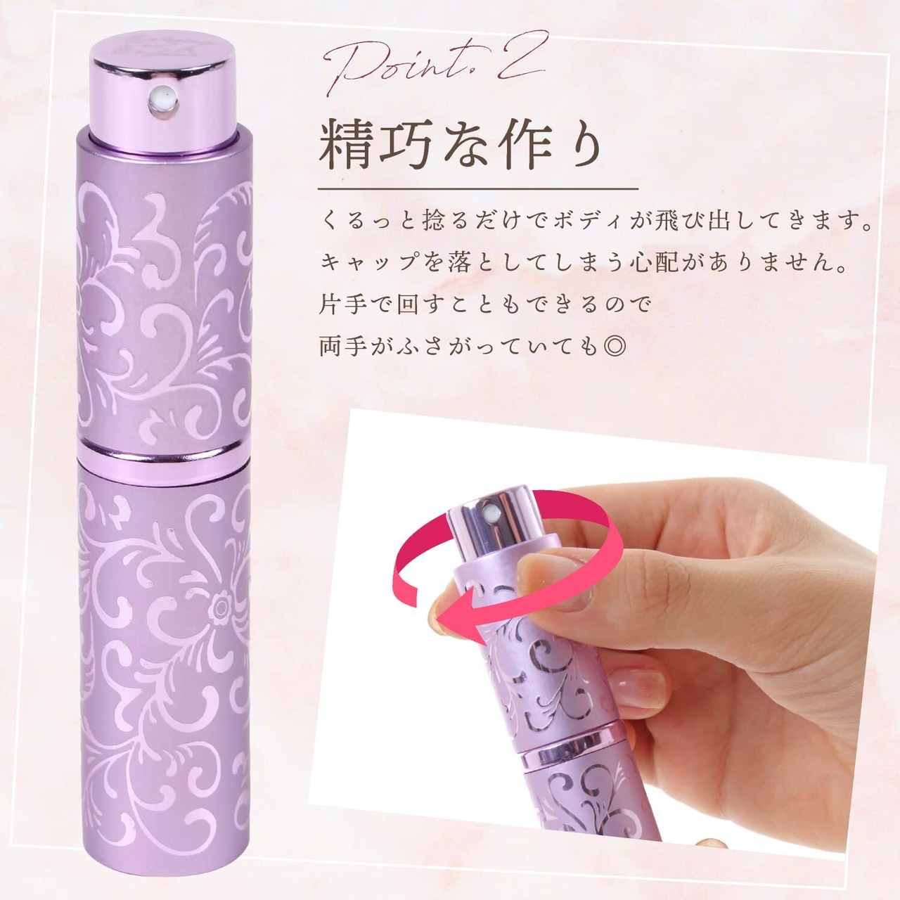 【商品仕様】香水・アロマオイル・化粧水・消毒液アルコールなどを入れて持ち運ぶことができる霧吹き回転プッシュ式アトマイザーでございます。 各種カラーを用意致しております。サイズも小型でポーチなどにも入れやすく小分けにして持ち運びやができます。