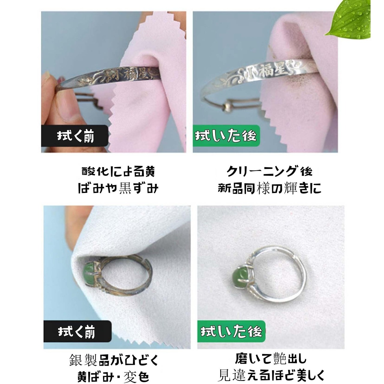 【幅広い対応素材】純銀、S925/S990シルバー、メッキシルバー、ゴールド、プラチナ、メッキゴールドなどの貴金属ジュエリーに最適。さらに腕時計、銅製品、楽器などの金属表面の汚れ落としやツヤ出しにも使える、万能クリーニングクロス。
