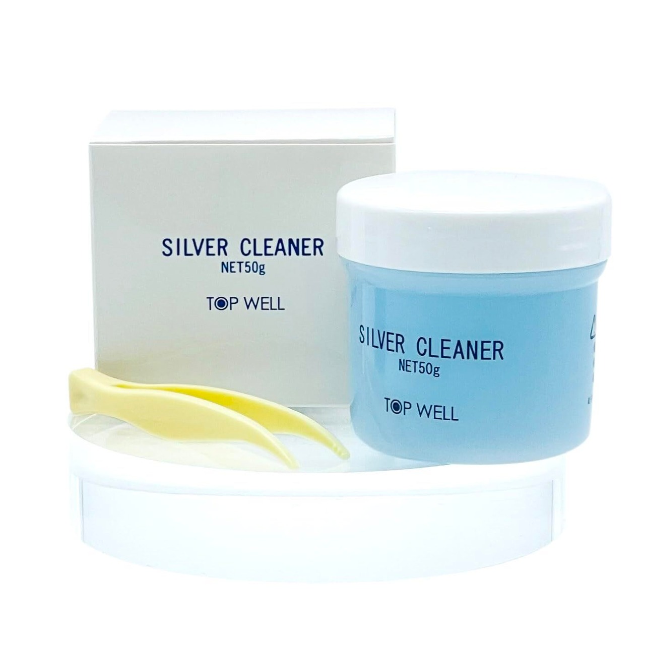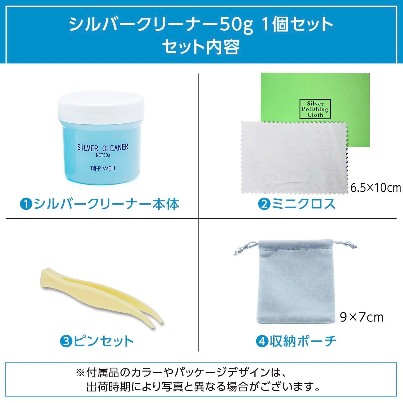 【数量限定】TOPシルバークリーナー50g 1個セット(手軽なお手入れ) ピンセット付 ミニクロス付 アクセ収納ポーチ付 S925 洗浄液