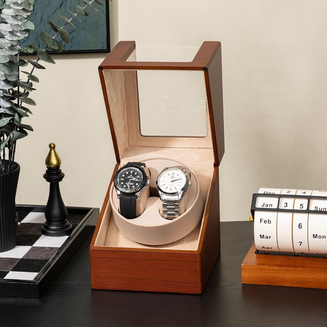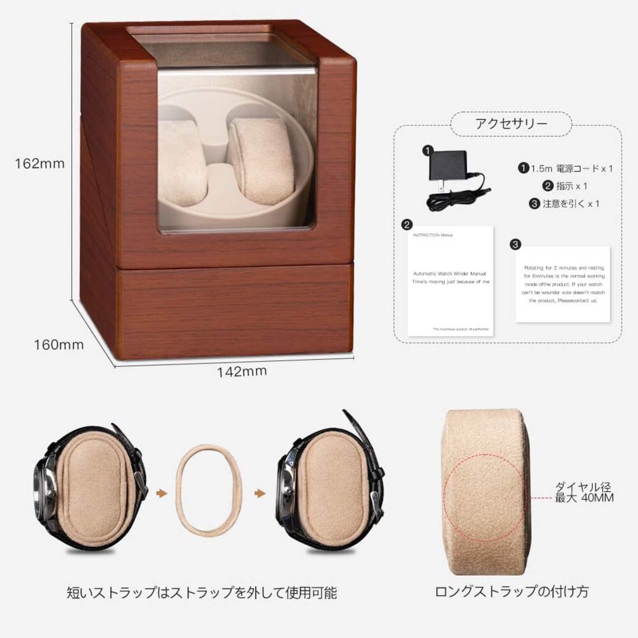 ワインディングマシーン 1本巻き 腕時計 自動巻き上げ機 静音 時計ケース 日本製 マブチモーター ウォッチワインダー 自動巻き 設計 新型の腕自動巻き上げ機、高級PU皮質 (木目調-135Y)