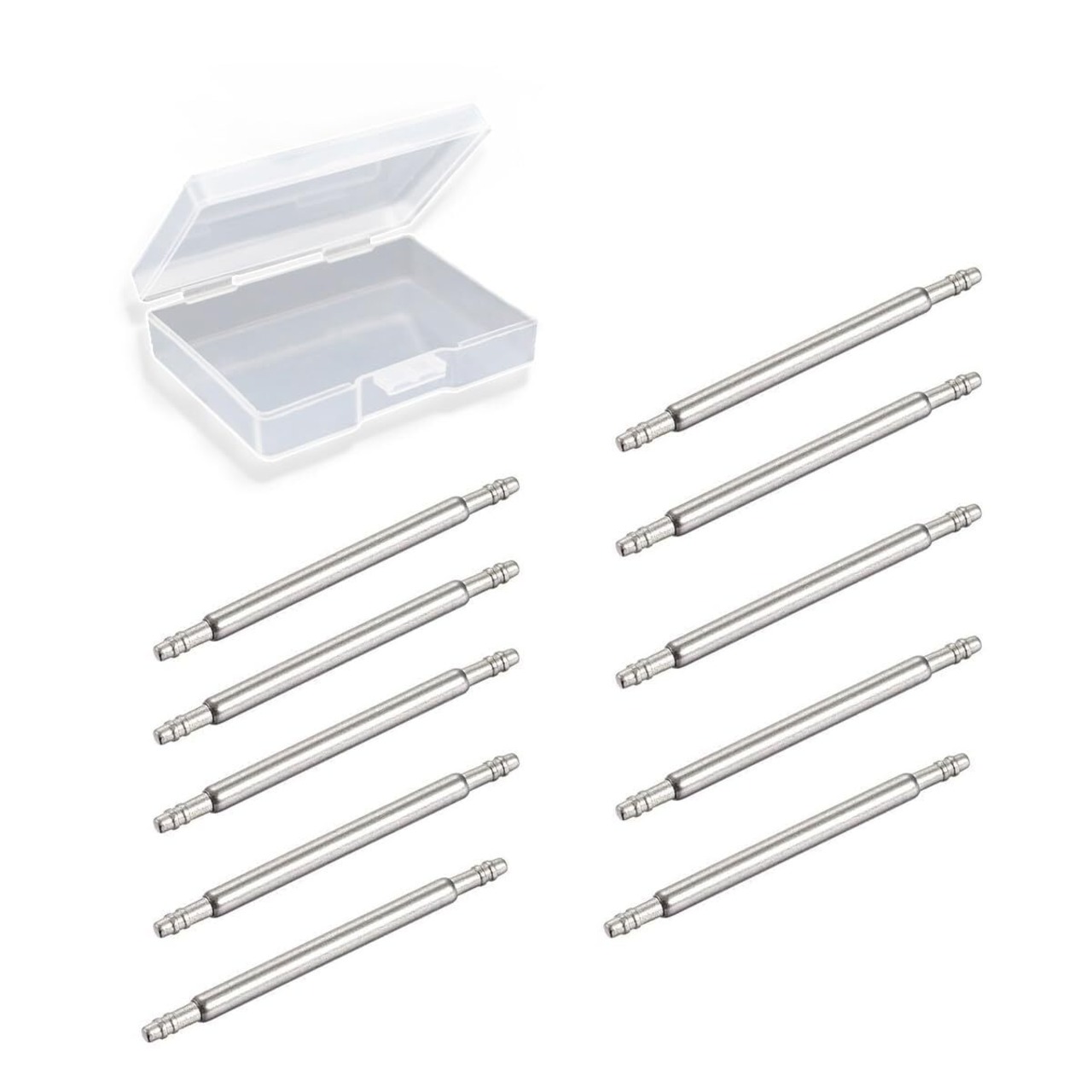 [TICFROG] 10個セット 20mm 時計バンドバネ棒 φ1.5mm ステンレススチール バネ棒 時計工具 バネ棒 20ミリ 時計ピン、エコ素材のプラスチック収納ケース付きで、小物収納に便利
