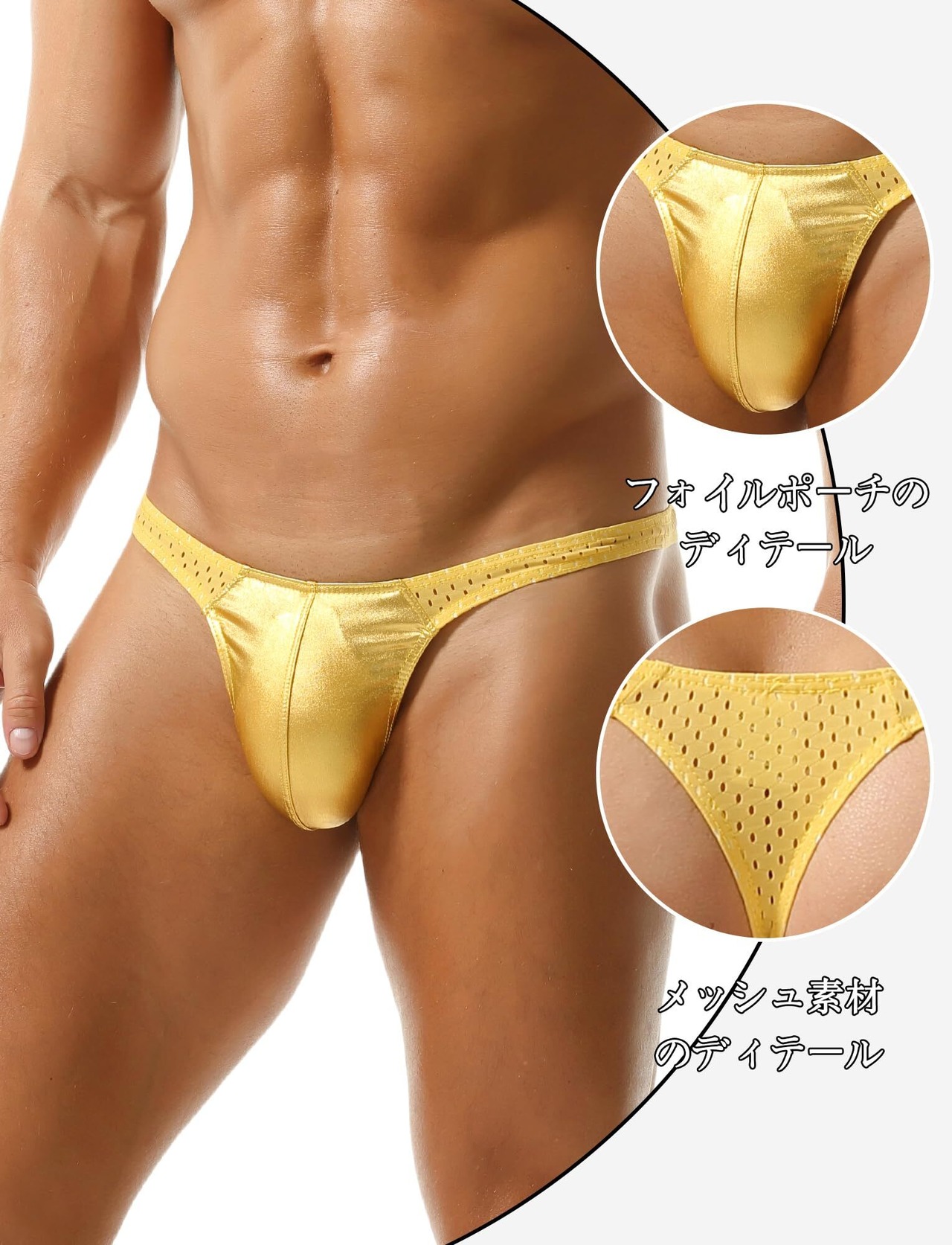 [Maeau] メンズ tバック ショーツ メッシュ 下着 パンティ ローライズ 光沢 ビキニ ブリーフ 薄手 通気 速乾 立体縫製 スポーツ ボディビル カジュアル