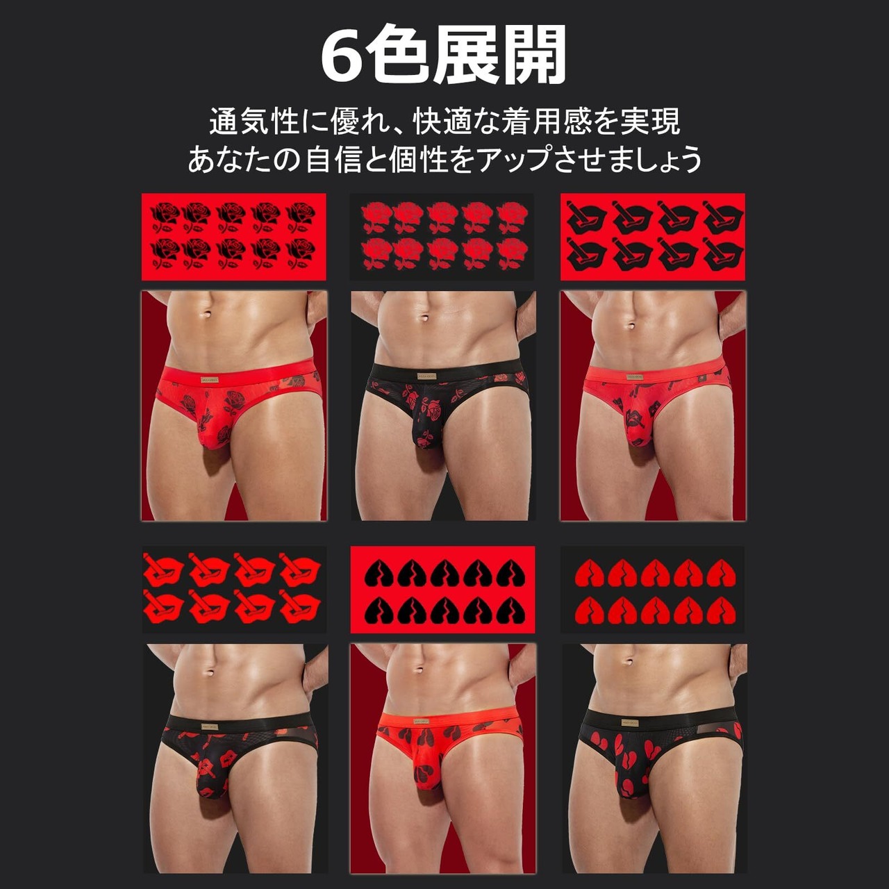✨【マルチプルの柄付け】誘惑的なハート柄やリップ柄、ローズ柄が前面に施され、男性の自信と個性を表現。野性的な魅力を放とう!