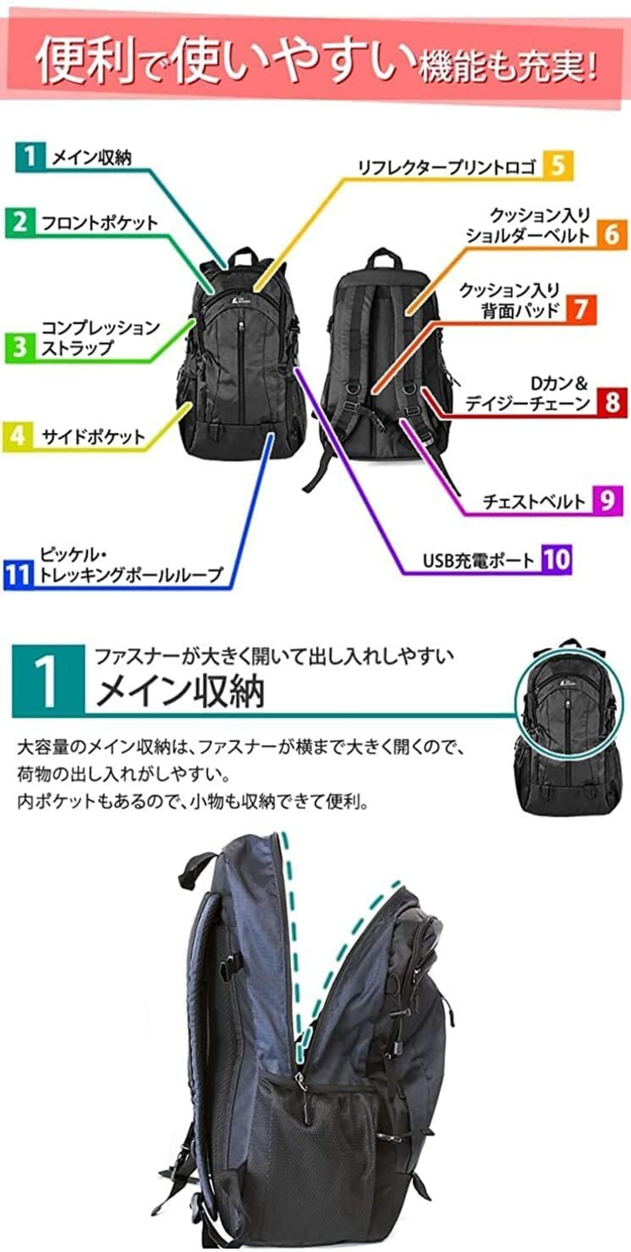 [LAD WEATHER] [ラドウェザー] リュック メンズ レディース 撥水・防汚 リュックサック 通勤 通学 登山 USB充電ポート付き