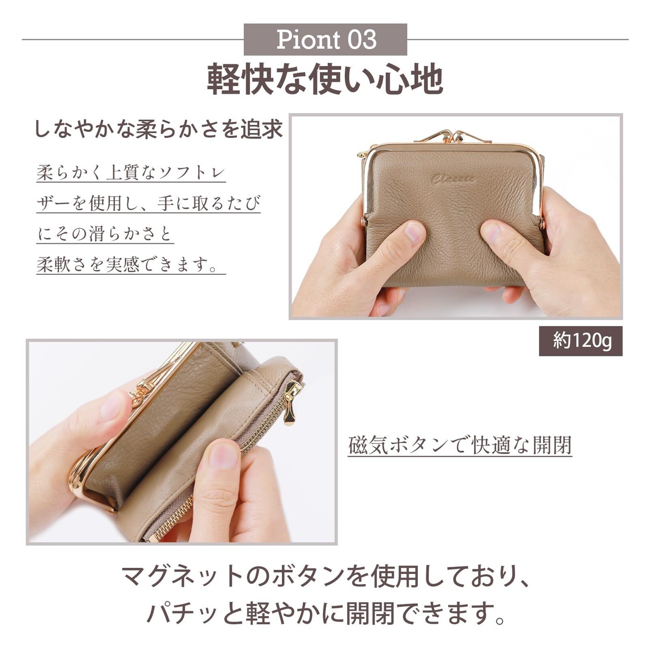 【2種類のコインポケットで使い分け自由】この財布には、2つの異なるコインポケットが備わっており、片側はクラシックながま口デザイン、もう片側はジッパー式。これにより、硬貨やカード、小型の口紅、リップクリームなど、ちょっとした必需品をしっかり収納できます。特に、極Minimalなスタイルで出かけたい方にもぴったりです。がま口部分は高品質の金属素材を使用し、複数回の電気メッキ加工が施されているため、長く使用しても輝きを失わず、錆びにくいのが魅力です。コンパクトながらも収納力が抜群で、日常使いに最適です。