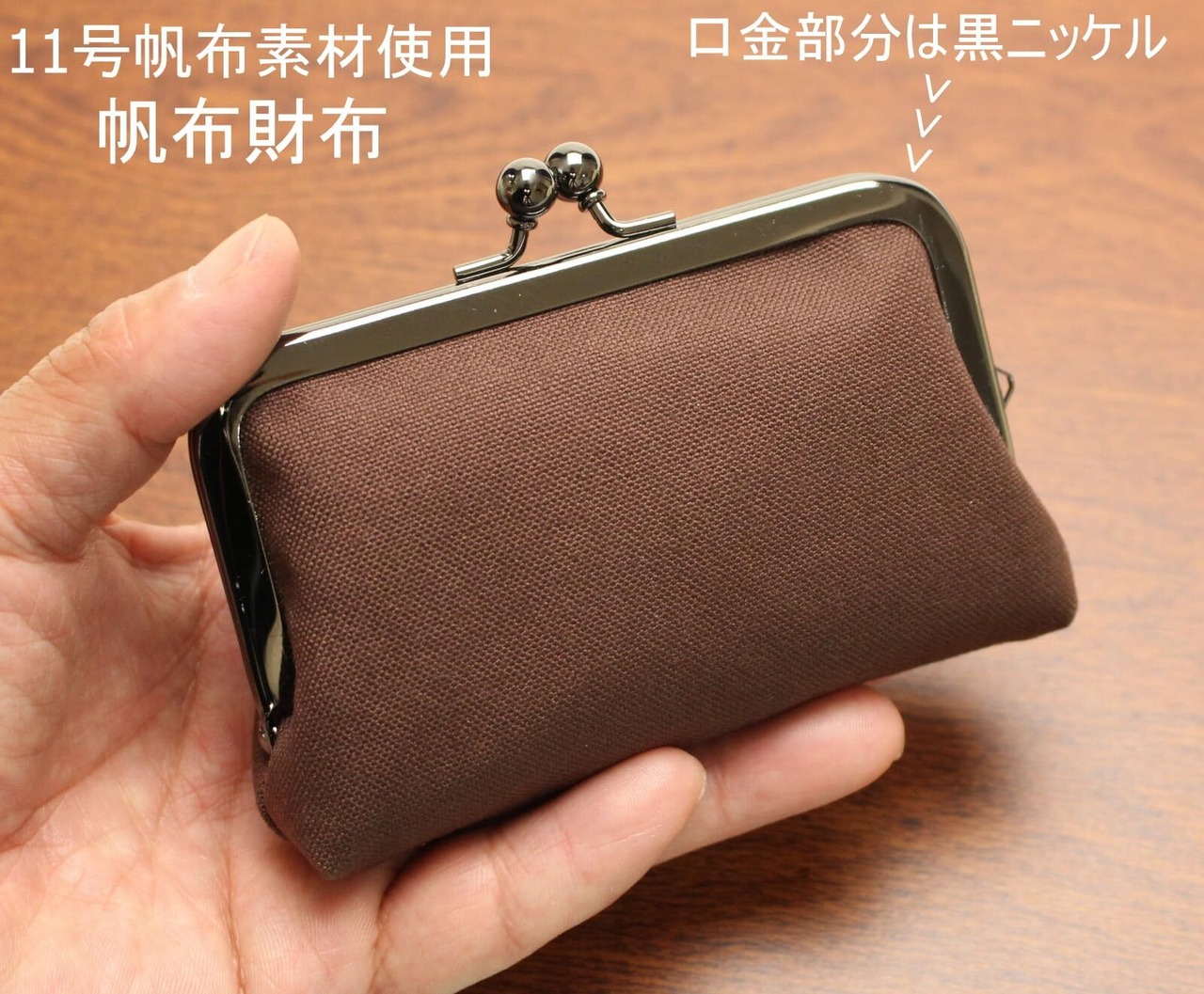 素材:本体 綿 (11号帆布) 口金 (黒ニッケル) 注意、口金部分に細かなキズなどがある場合がございます、ご了承の上お買い求めください