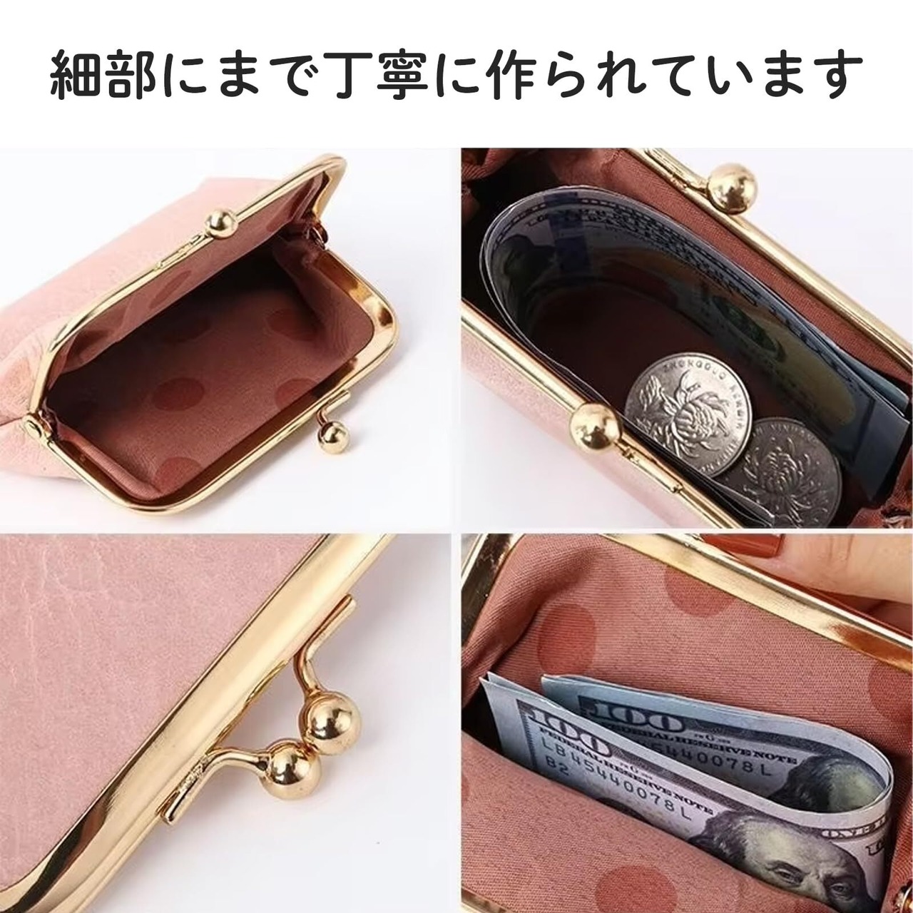 ◆丁寧な作りと安心のがま口金具:しっかりとした縫製でほつれにくく、丈夫な金具で中身が飛び出しにくい設計。雨にも強いPUレザーは、毎日安心して使える品質です。