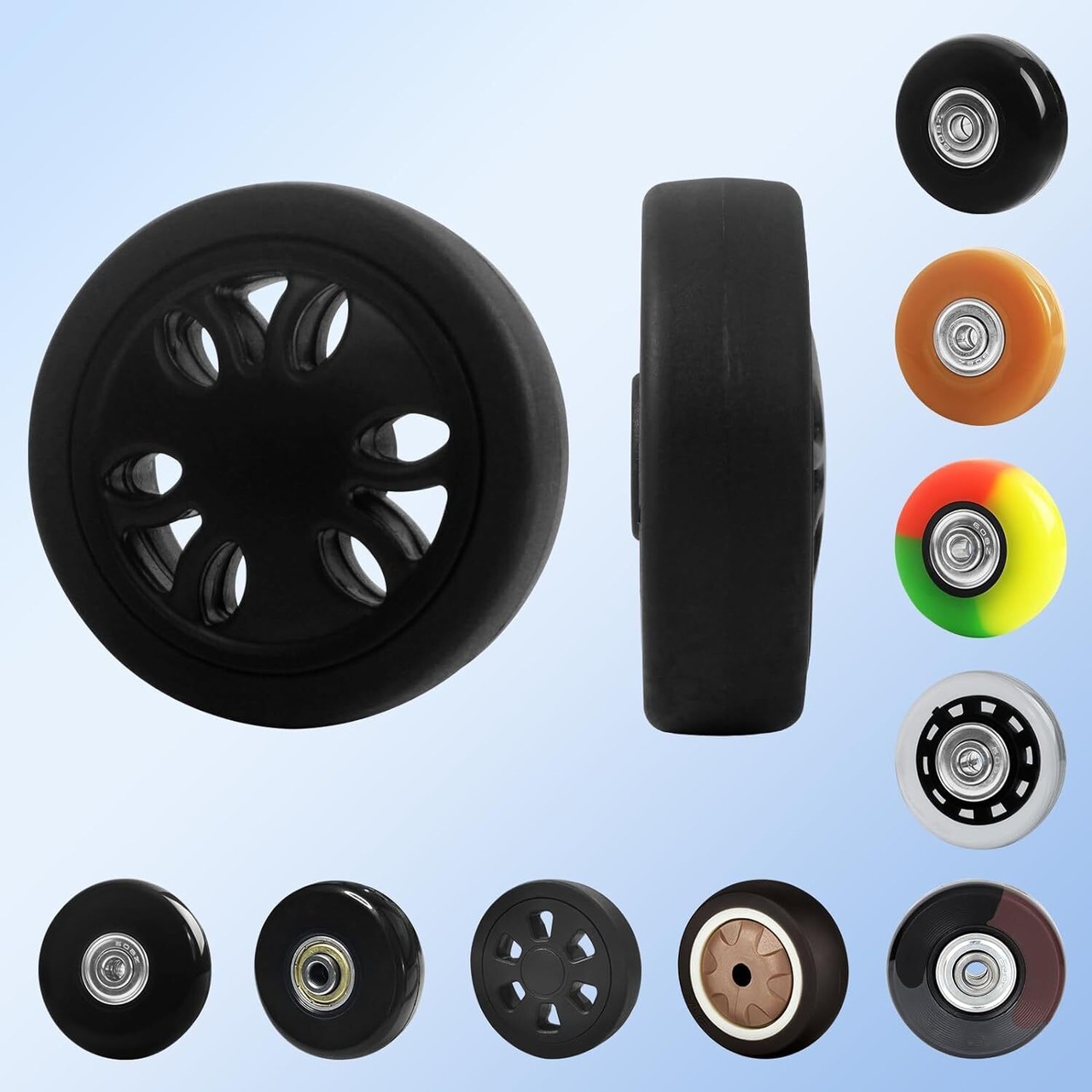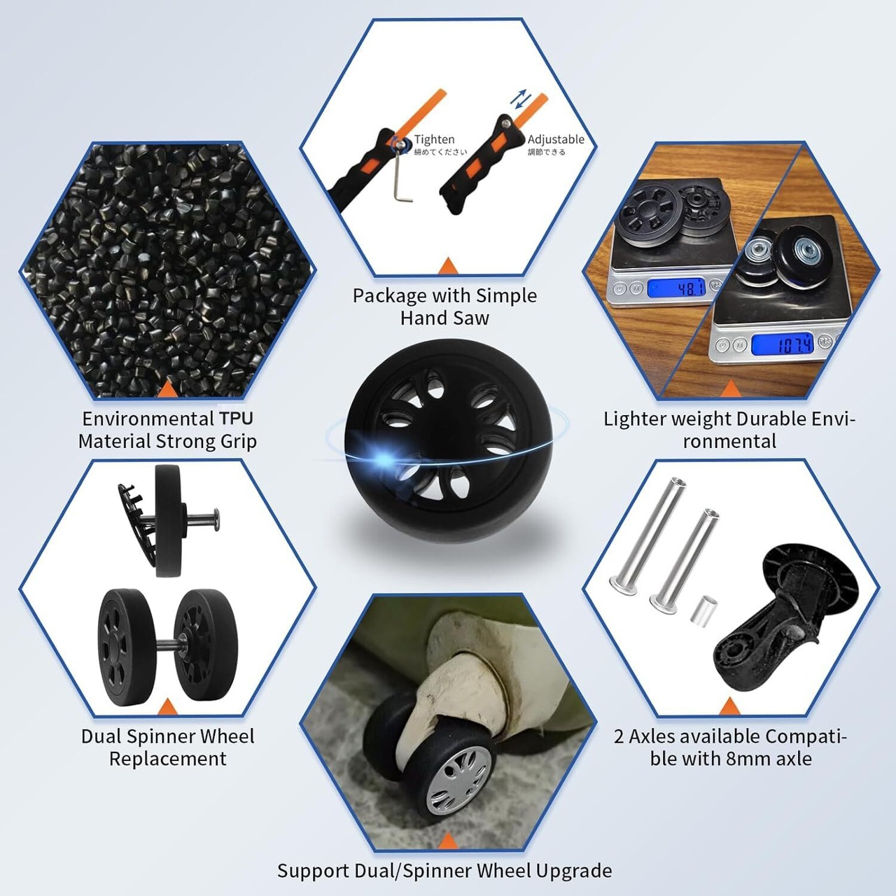 【数量限定】[ASUNTOM] ラゲッジスピナーホイール修理セット スーツケースタイヤ 4個 2インチ/52mm 回転ホイール 厚さ0.59インチ/15mm TPUゴムインラインホイール 2サイズ車軸フルセット 修理ツール スピナー スーツケース トロリーバッグ ドローバー トラベルボックス