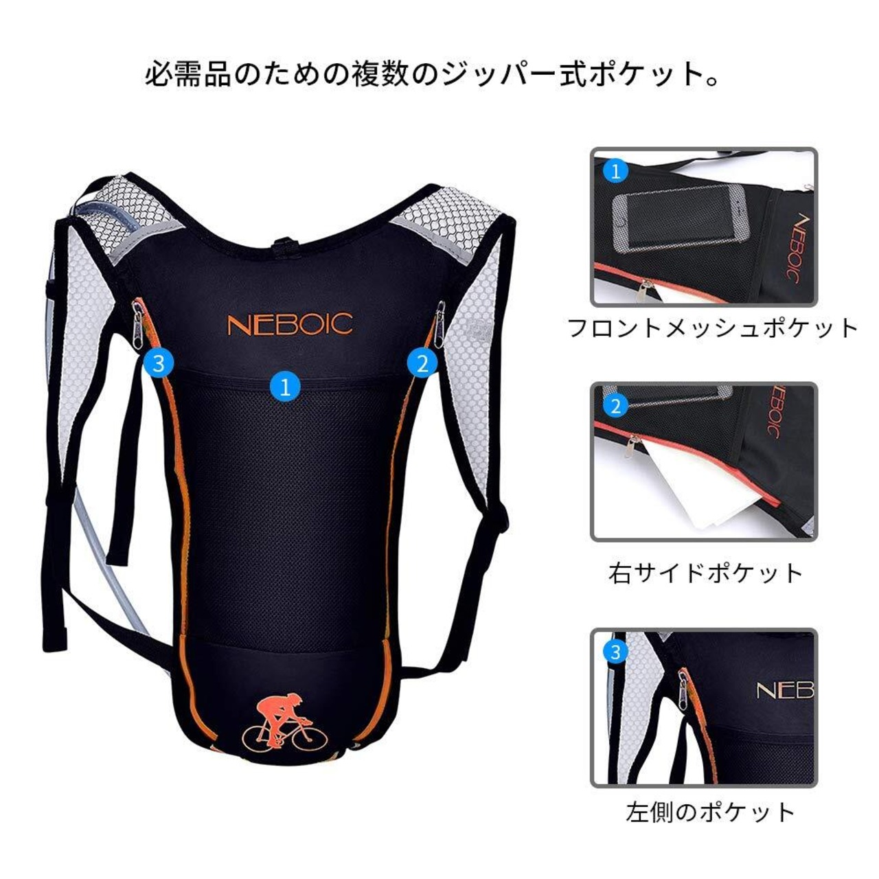 【追加ポケット3つ付き】ハイドレーションバッグは簡単にアクセスできるメッシュのフロントポケット1つとジッパー付きサイドポケット2つが設計されることで、必需品を収納するのに十分なスペースが確保されます。