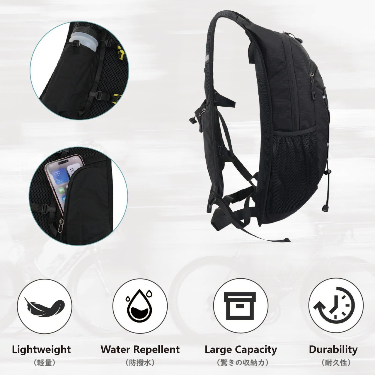 【18L容量たっぷり】--18Lの大容量でスポーツ用品を持ち運びやすいリュックは、収納力抜群です!胸ポケットにボトルやスマホ、財布、鍵などを収納でき、メインコンパートメントには給水袋や衣類を入れられます。シーンに応じて使い分けが可能で、整理も簡単です。