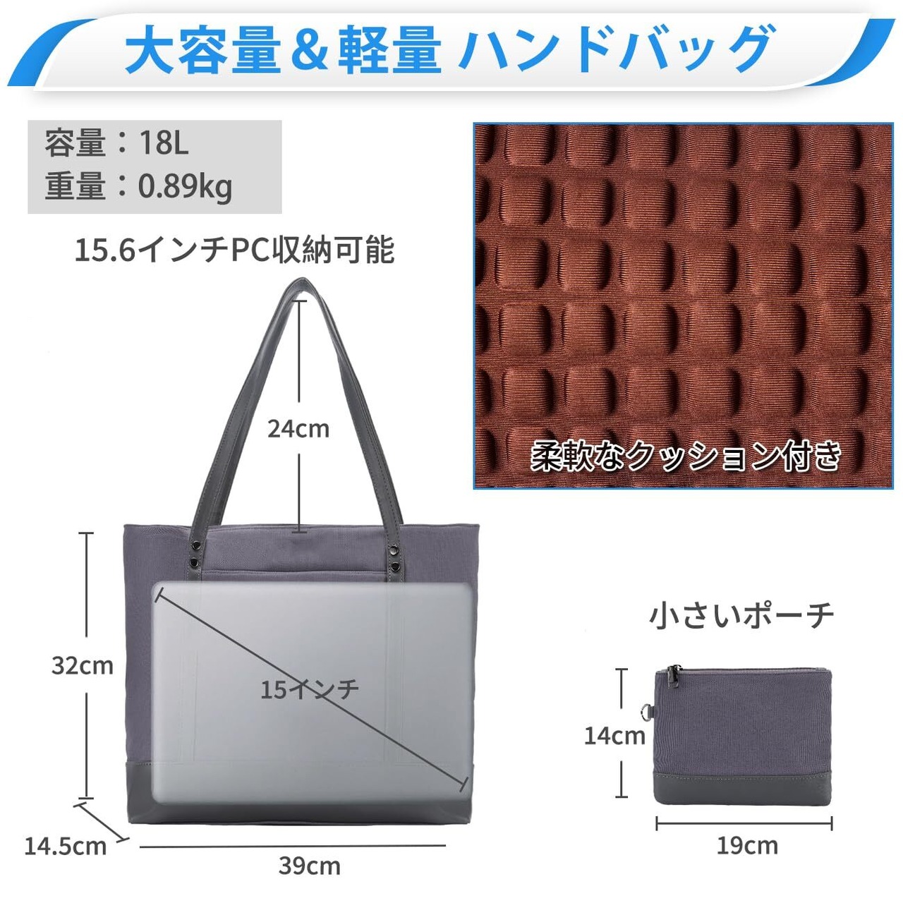 【特価商品】VASCHY 大容量 トートバッグ レディース ビジネスバッグ 15.6インチPCバッグ A4対応 ハンドバッグ 買い物バッグ 通勤 出張 肩掛け 2点セット スーツケースベルト付き