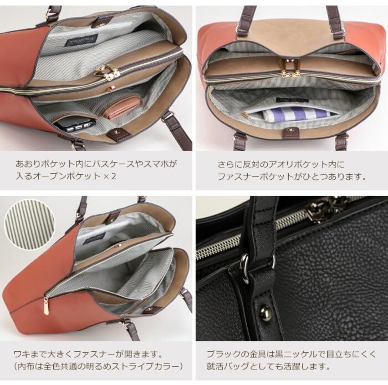 [プラグマ] PRAGMA バイカラー トートバッグ A4 大容量 ビジネス バッグ A4ファイル対応 リクルートバッグ シンプル 大きめ トート A4サイズ 機能的