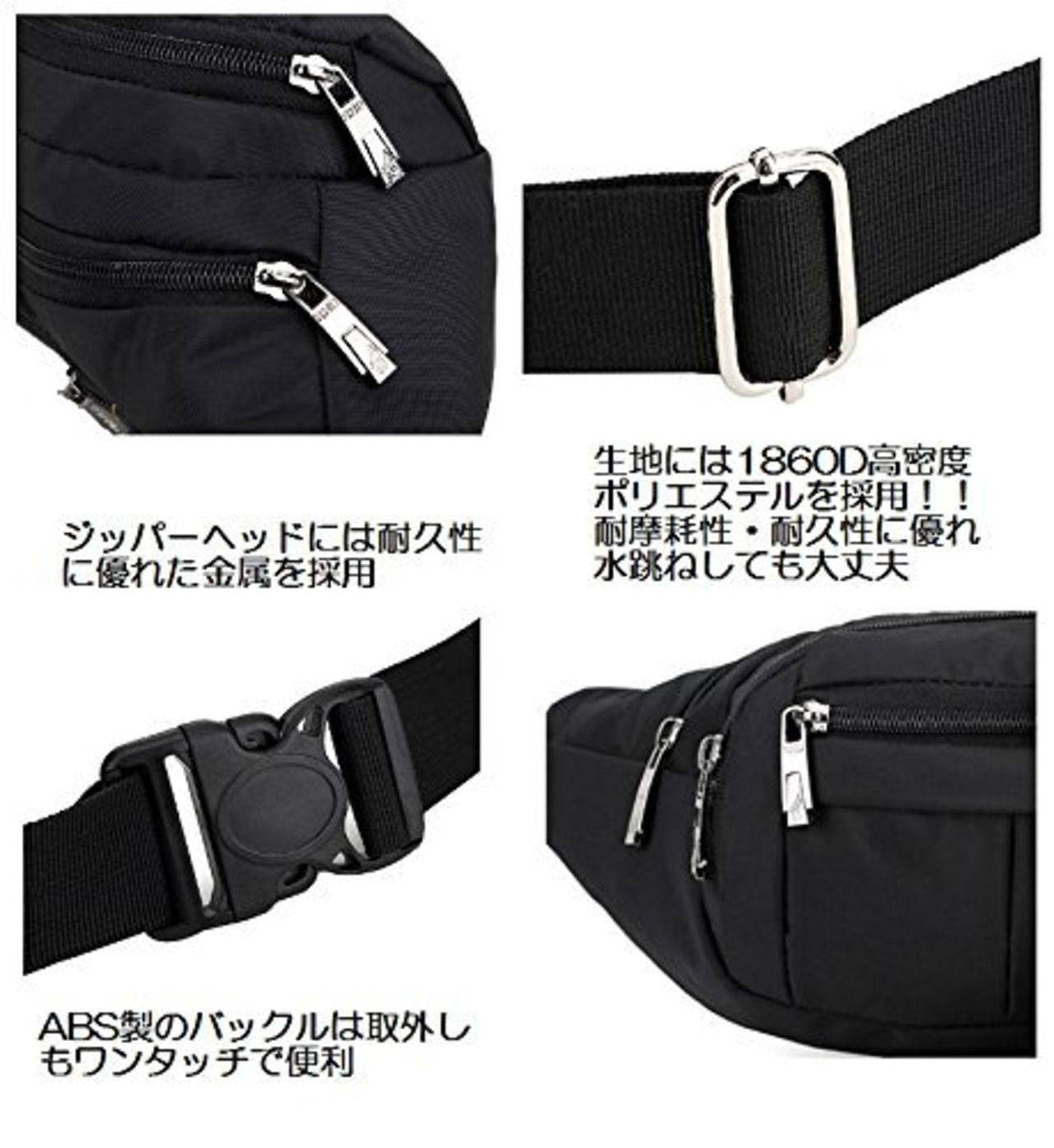Schlegel ウエスト ポーチ バッグ 防水 メンズ レディース 多機能 ヒップ ボディ バッグ バイク アウトドア サイクリング ブラック