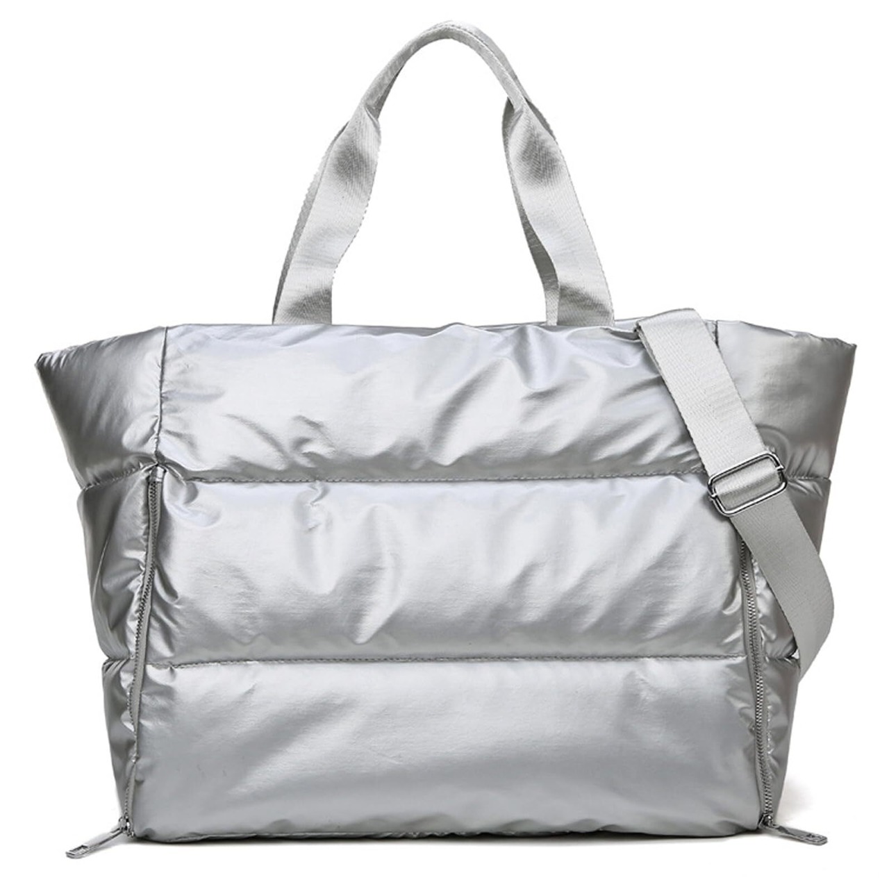 Ganve ボストンバッグ レディース 3way 軽量 キャリーオンバッグ 35L 大容量 防水 乾湿分離 機内持込可能 ショルダーバッグ トートバッグ アウトドア スポーツ ジム 水泳 旅行 修学 通勤 1泊2日 2泊3日 可愛い 人気 無地 (C-銀)