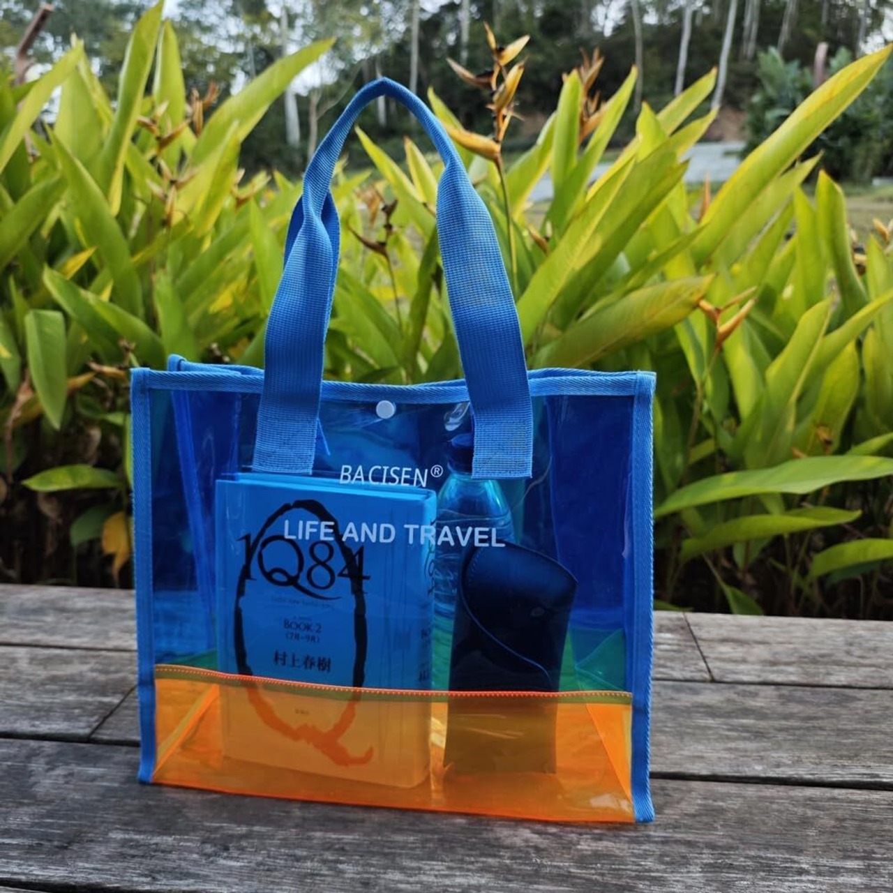 【濡れても大丈夫な透明バッグ】耐水性PVC素材を採用した上、精密な縫製テクニックを利用して、しっかりとした生地です。雨の日にもバッグの中身を湿すことは心配いらないです。上部スナップボタン付で簡単に留められるから中身が飛び出さなくて安心です。また、透明のデザインなので、バッグの中身がひと目で確認できます。通学、プール、キャンプ、お花見、ジム、運動会、温泉用のバッグなどとしても活躍します。