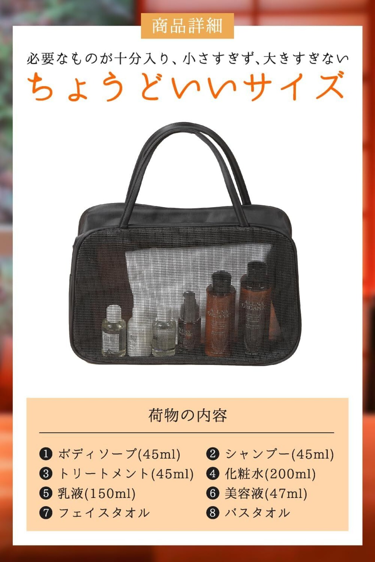 【ちょうどいいサイズ】バスタオルも収納可能で、持ち運びしやすいサイズの温泉バッグ(スパバッグ)です。シャンプーセット、スキンケア用品、アメニティなどを「ひとまとめ」にして持ち運びできます。