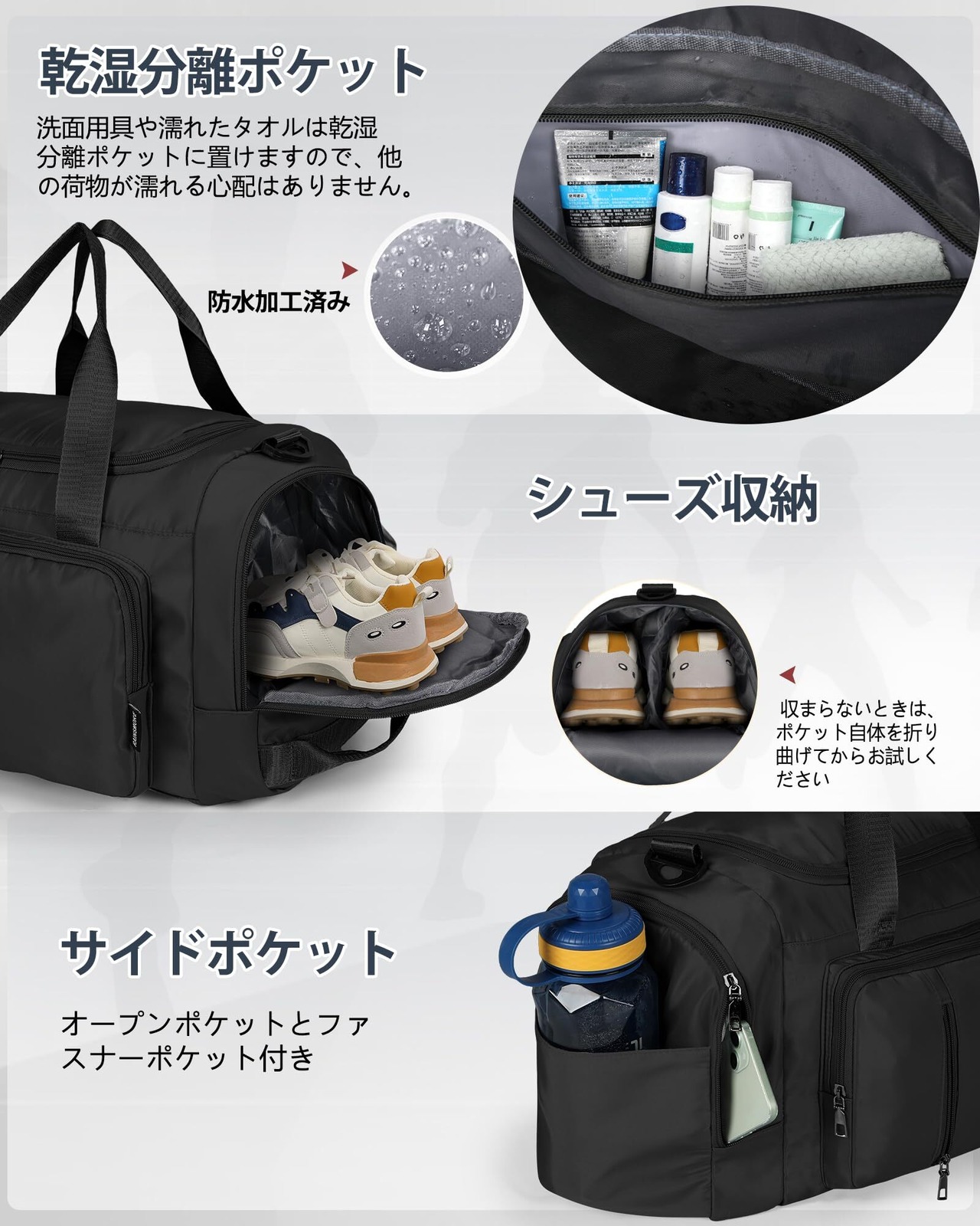 【新着商品】ボストンバッグ 修学 大容量 30L 旅行バッグ レディース 撥水加工 1泊2日 4WAY ジムバッグ メンズ ショルダー 靴収納 乾湿分離 軽量 ベルト取り外し可能 スポーツ ブラック