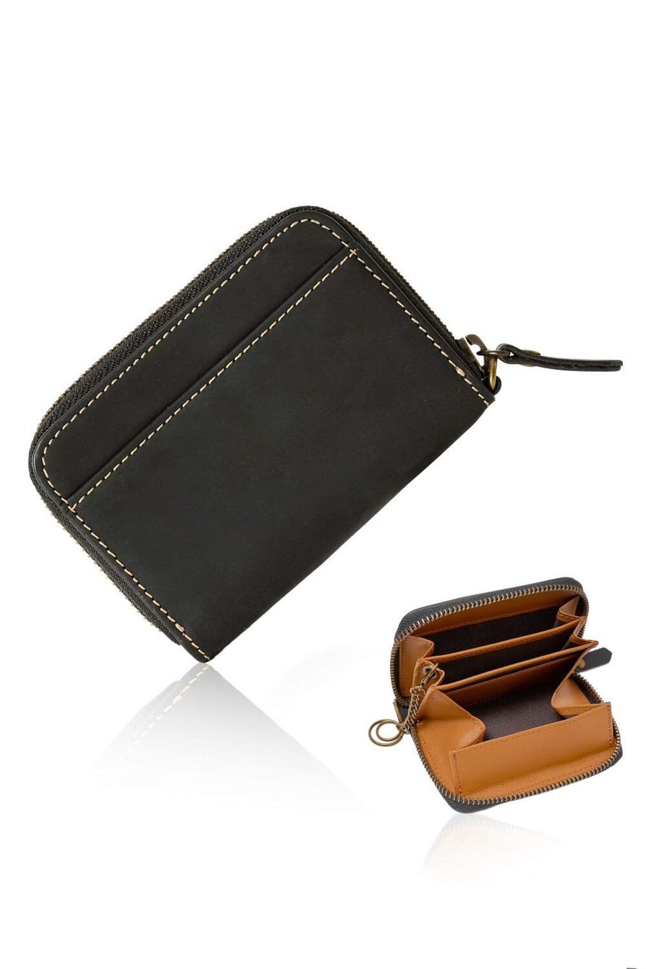 [ 亀登鞄製作所 ]財布 小銭入れ コインケース ミニ財布 本革( 小さいのに大容量)( 小銭・紙幣・カード・鍵を全部収納 )メンズ コンパクト|タッチ決済OK 通勤・通学に最適|職人手作り クレイジーホースレザー (ブラック×茶)