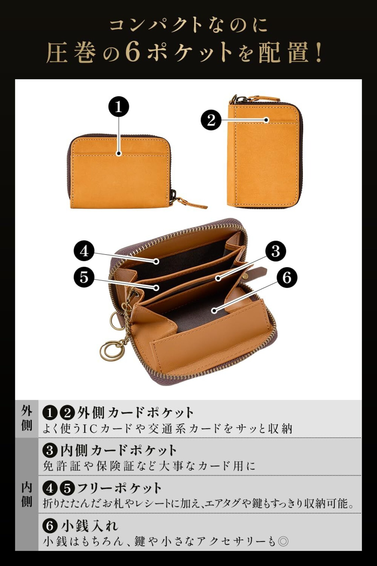 【手のひらサイズに、驚きの大容量】小銭・紙幣・カード・鍵を全部スマートに収納。普段使いもサブ財布もこれ一つ。免許証やマイナンバーカードにエアタグやお家の鍵も分けて収納できるのでとっても便利です。ズボンのポケットに入れてもかさばらないので、スーツや私服スタイルどちらにも馴染みます。