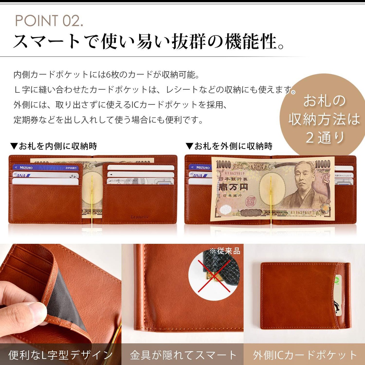 [Le sourire] マネークリップ メンズ 二つ折り 財布 カード 小銭入れ カードケース 本革 ルスリール キャメル