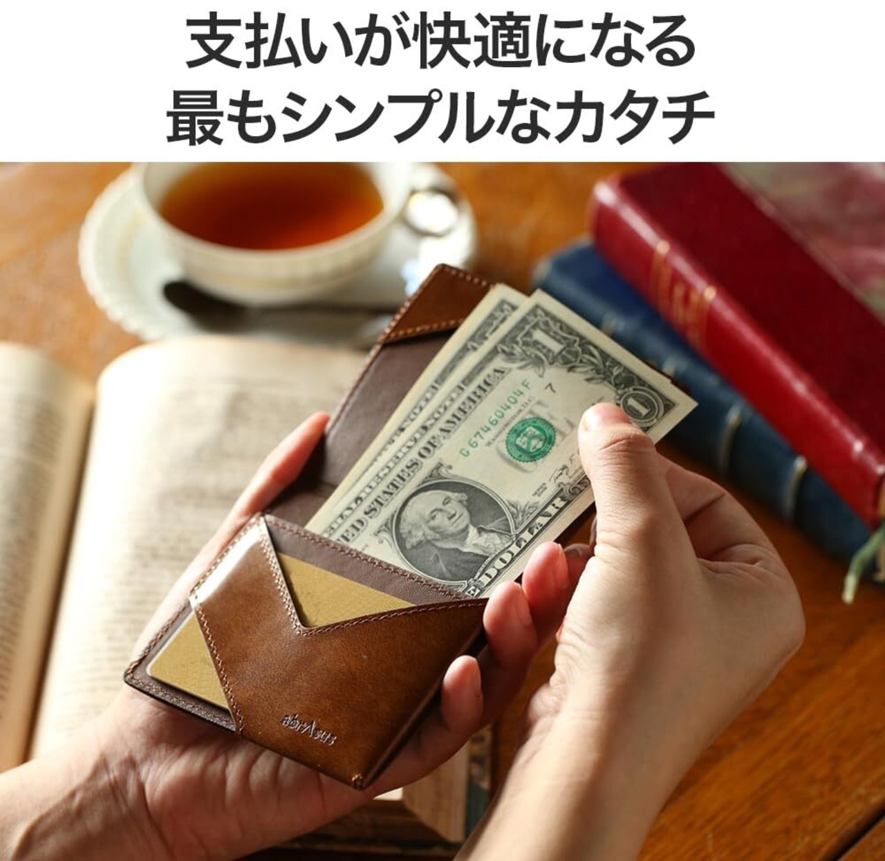 金属の部品は全く使用していないので、服やカード類を傷つけません。紙幣を二つ折りせずに収納できるから、出し入れが快適です。