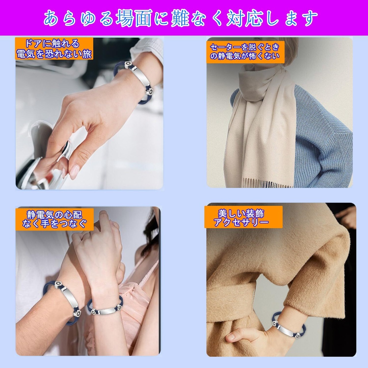 【静電気除去】静電気防止ブレスレットは、磁気リングを形成することで電流の正負比を調整し、静電気を除去する効 果 を実現します。静電気は2~3週間で軽減しますので、少なくとも1週間は着用してみてください。 着用期間が長くなると、どんどん良くなります。