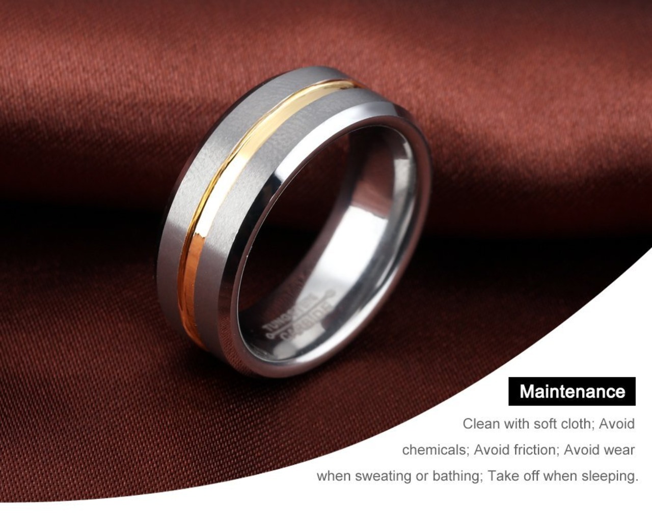 【高品質なタングステン製】本物のタングステンカーバイドによって作られており、比重は金とほぼ同じ、その硬度はダイヤモンドに匹敵。耐久性、低刺激性、優れた耐引掻性などの性能があり、いつまでもその高度な輝きを失いません。
