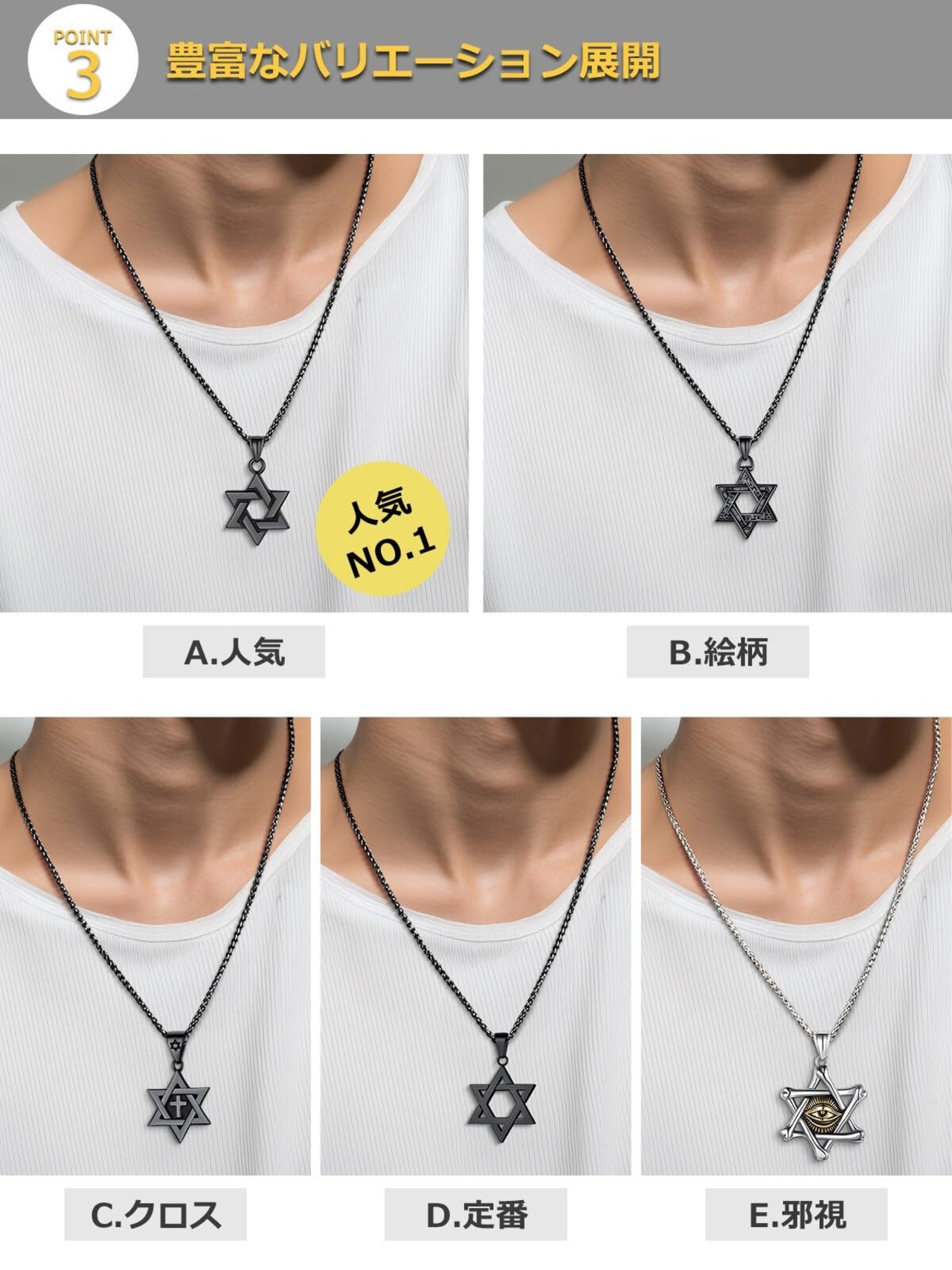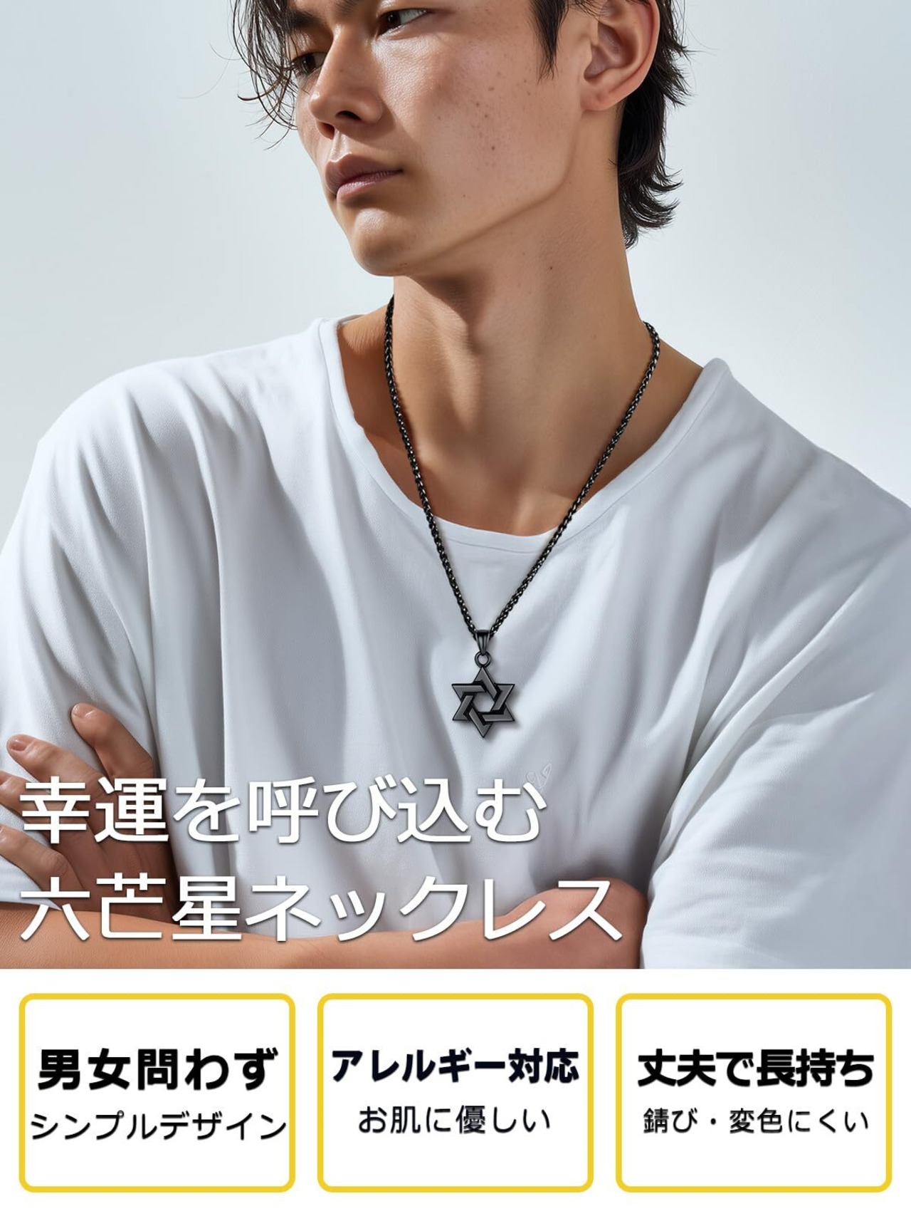 [ChainsPro] 六芒星 ネックレス メンズ ブラック ダビデの星 お守り 黒 ステンレス ペンダント かっこいい 錆びない おしゃれ 男性 星 アクセサリー