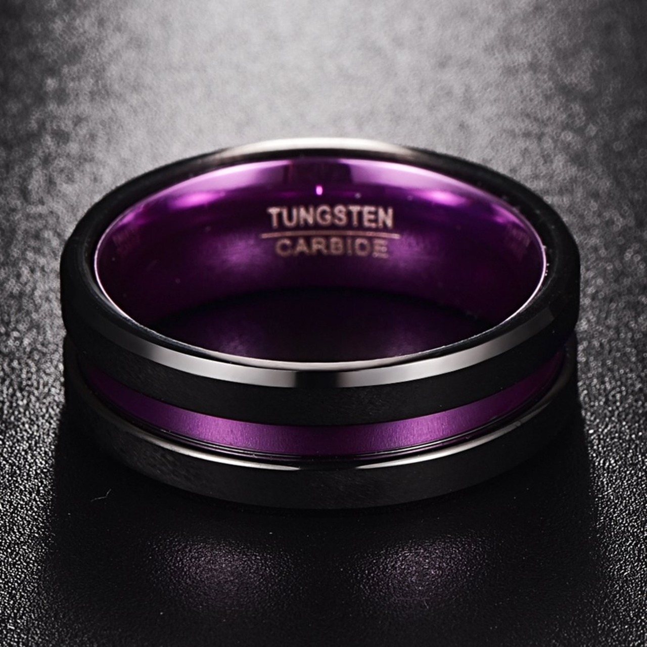 【在庫セール】[Nuncad(ヌンカド)] メンズリング 指輪 タングステン シンプル つや消し 平打ち 色落ちしない メンズジュエリー 幅:8mm ブラック パープル 26号