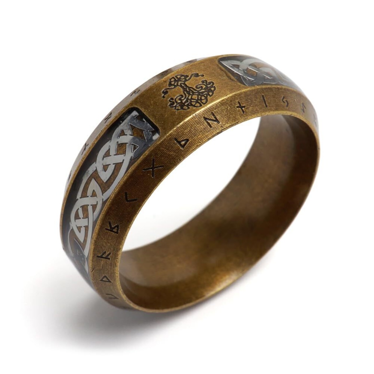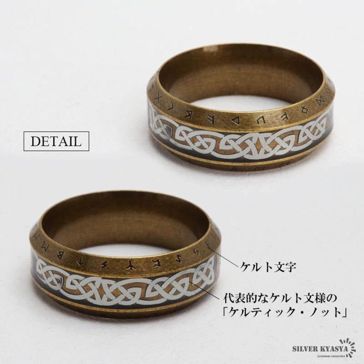 [silver KYASYA]ステンレス ケルト模様リング アンティークゴールド つや消し加工 ユグドラシル 生命の樹 ヴィンテージリング メンズ 指輪 男性 金属アレルギー対応