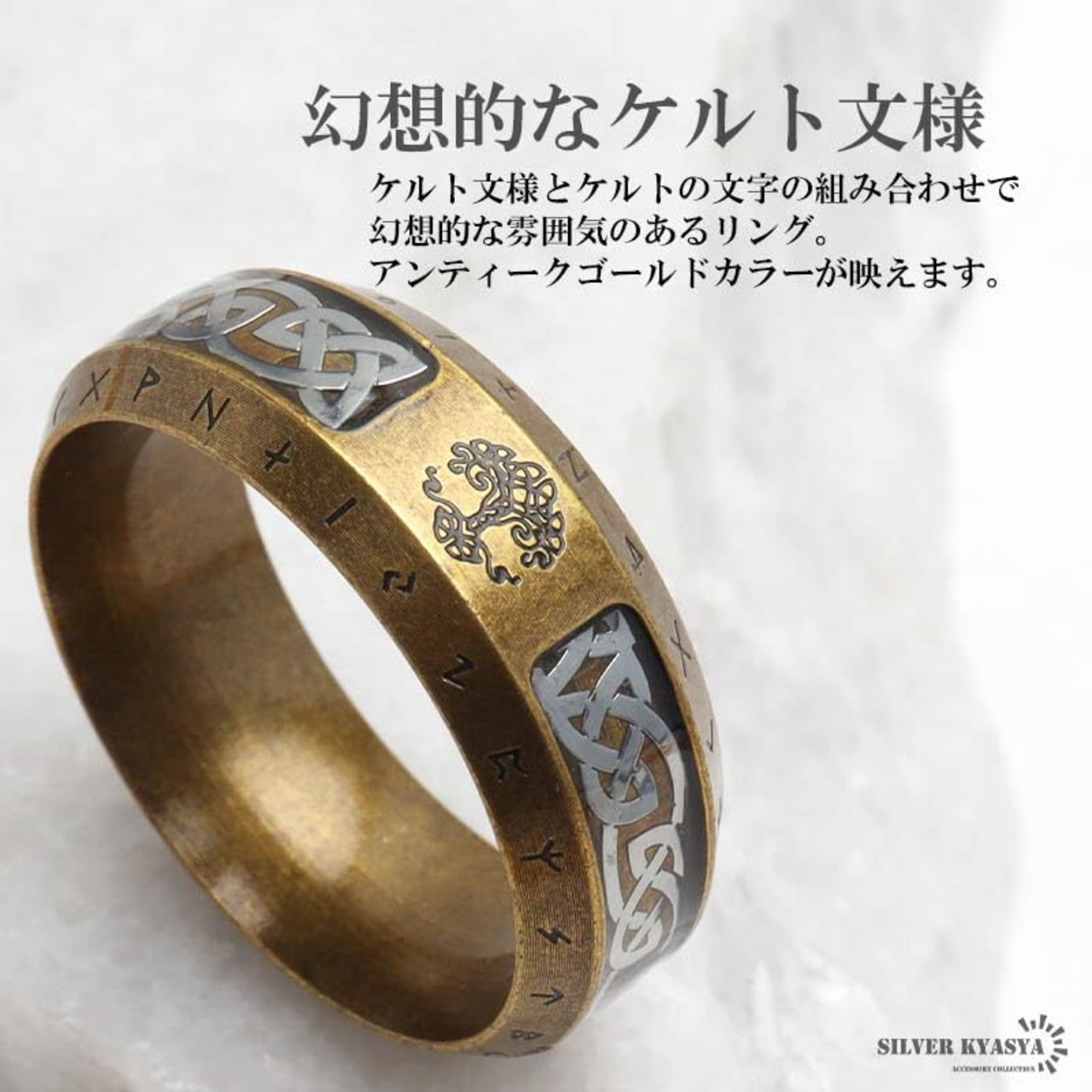 【人気商品】[silver KYASYA]ステンレス ケルト模様リング アンティークゴールド つや消し加工 ユグドラシル 生命の樹 ヴィンテージリング メンズ 指輪 男性 金属アレルギー対応