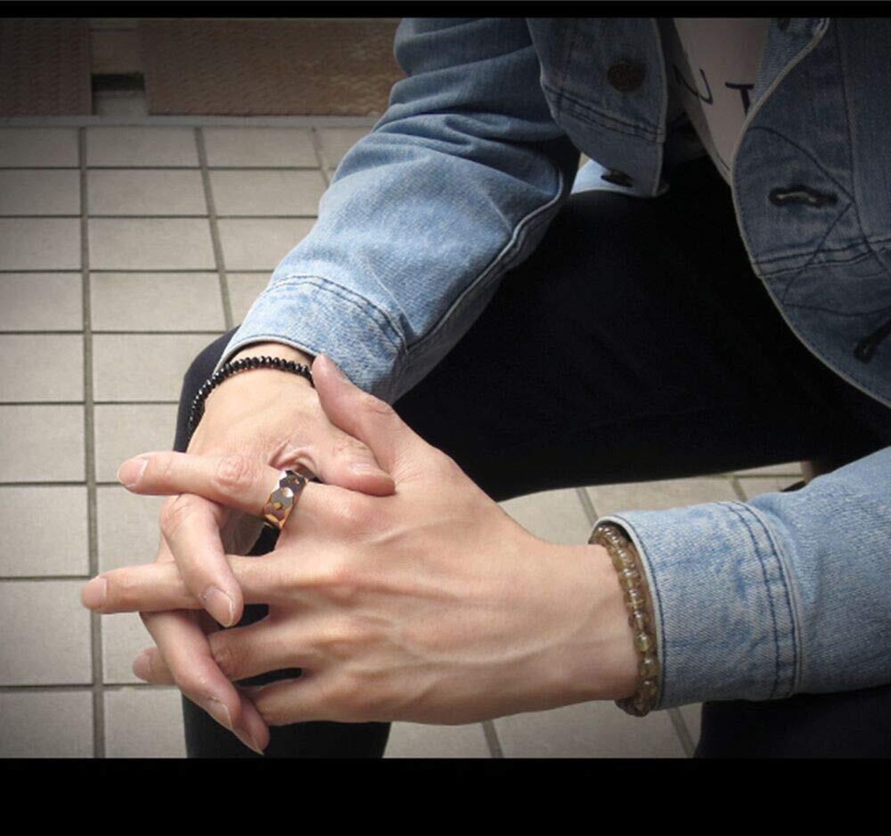 【デザイン】ざっくりとした大きめのカットが武骨な存在感を放つ、タングステンの重厚な質感を活かしたデザイン。余分な装飾は一切無く、独特のカットだけを全体に施し、多面鏡のように光を反射するクールなアイテムに仕上げました
