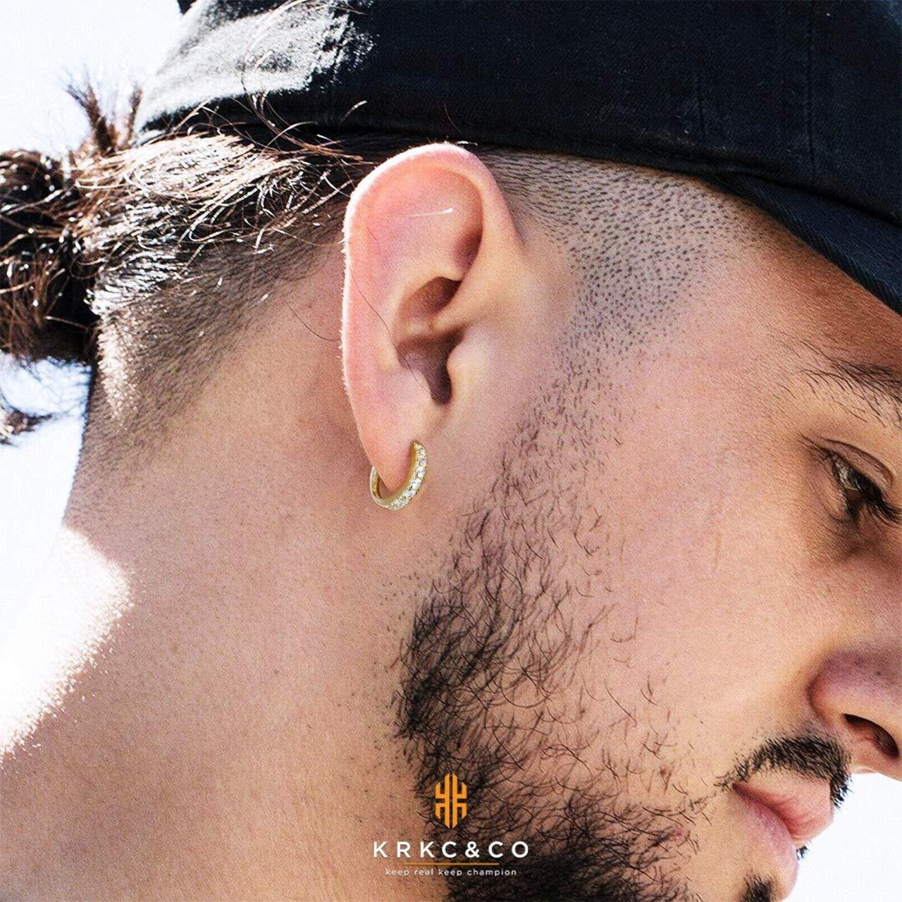 KRKC&CO フープピアス 片耳 メンズピアス ブラック 15mm シルバー925 リングピアス 金属アレルギー対応 14金メッキ ジルコニア ラウンドフープ 黒 シンプル 男女兼用