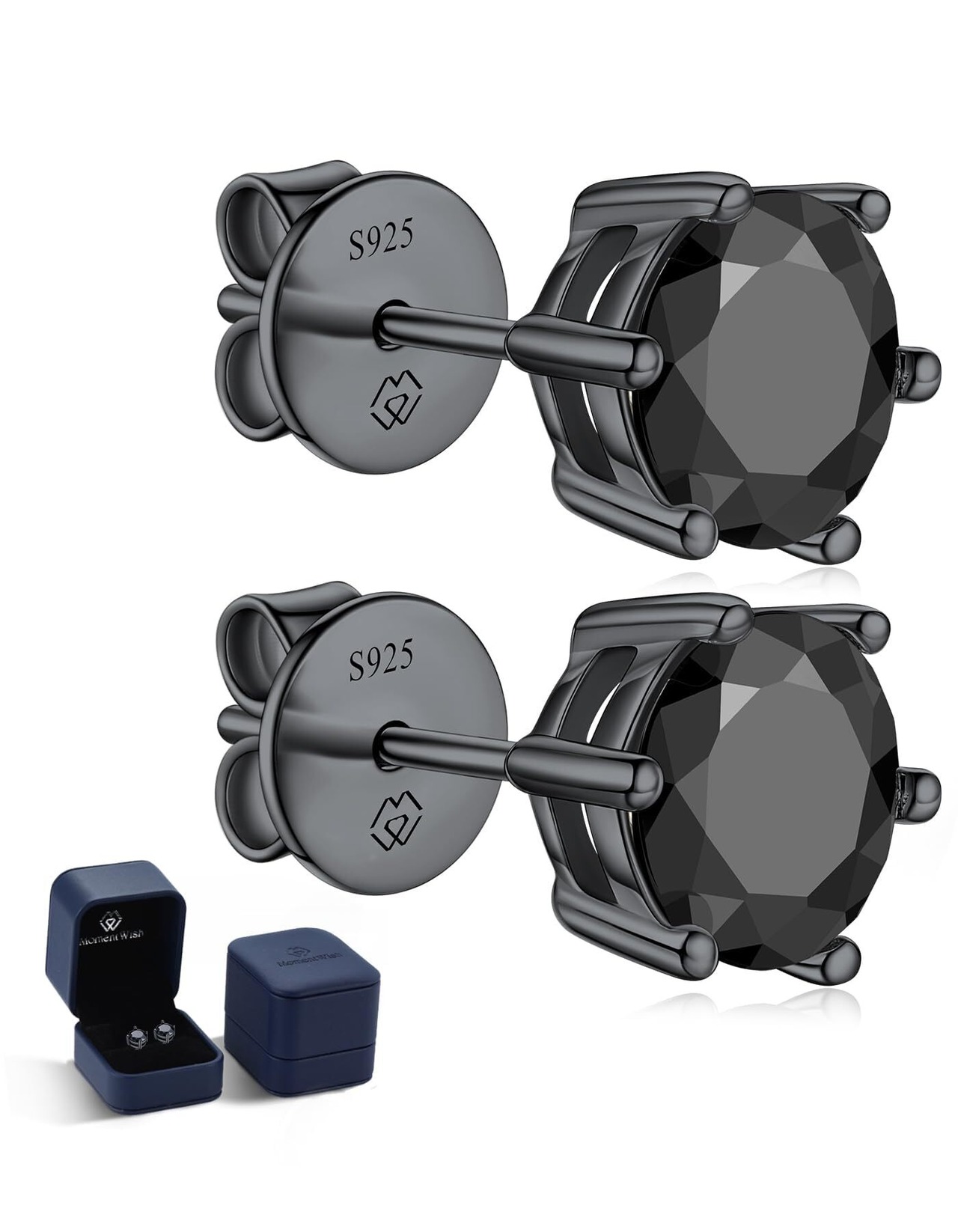 MomentWish 黒 ピアス メンズ レディース 1-2CT ブラックダイヤモンド モアッサナイト セカンドピアス 金属アレルギー対応 男女兼用 プレゼント ギフトボックス付き